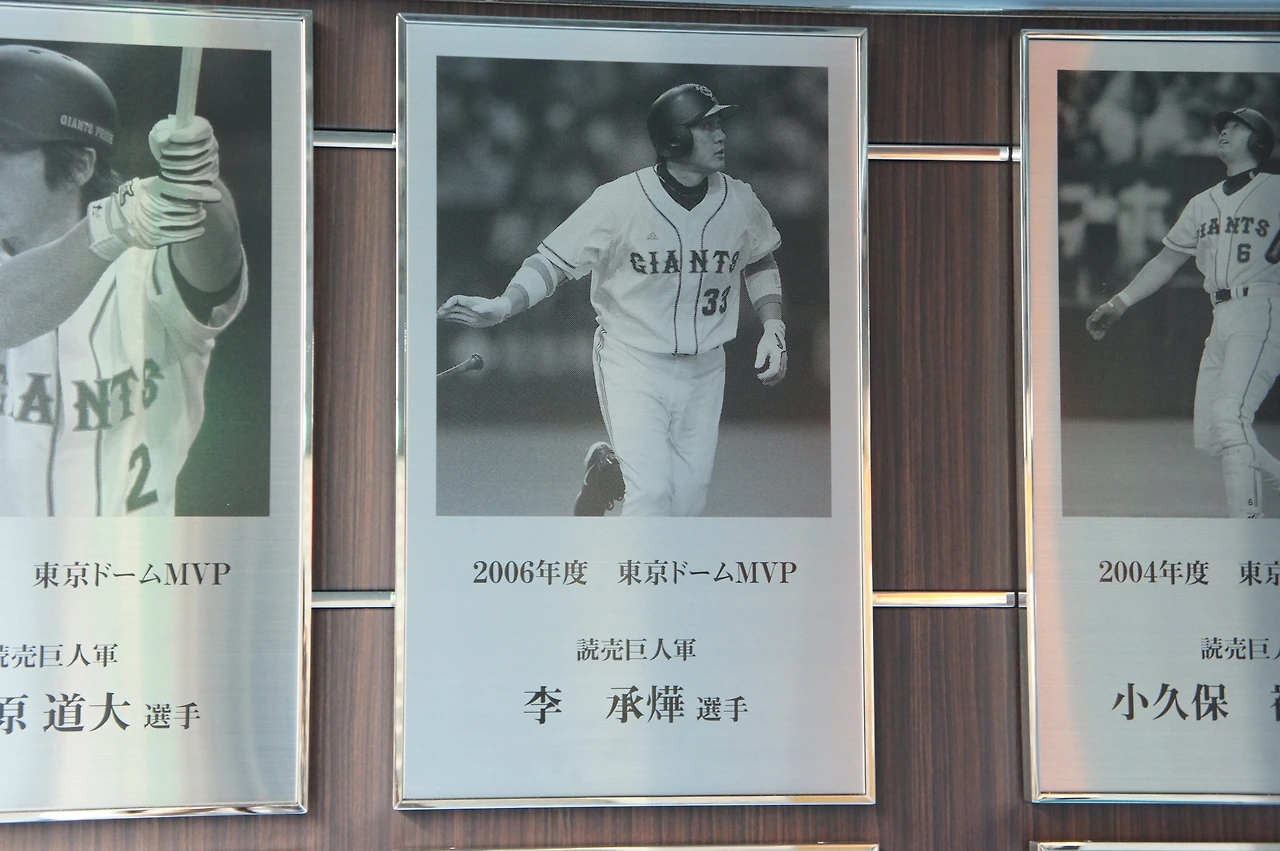 도쿄 돔을 홈 구장으로 사용하는 구단 (요미우리 자이언츠, 과거일본햄 파이터즈) 선수를 대상으로 하여 뛰어난 활약을 한 선수를 선정 해 상금과 상을 줍니다. 어떤 선수가 받았는지 액자로 걸어 놓았다. 잘 보면 이승엽 선수도보이니 한 번 찾아보세요.