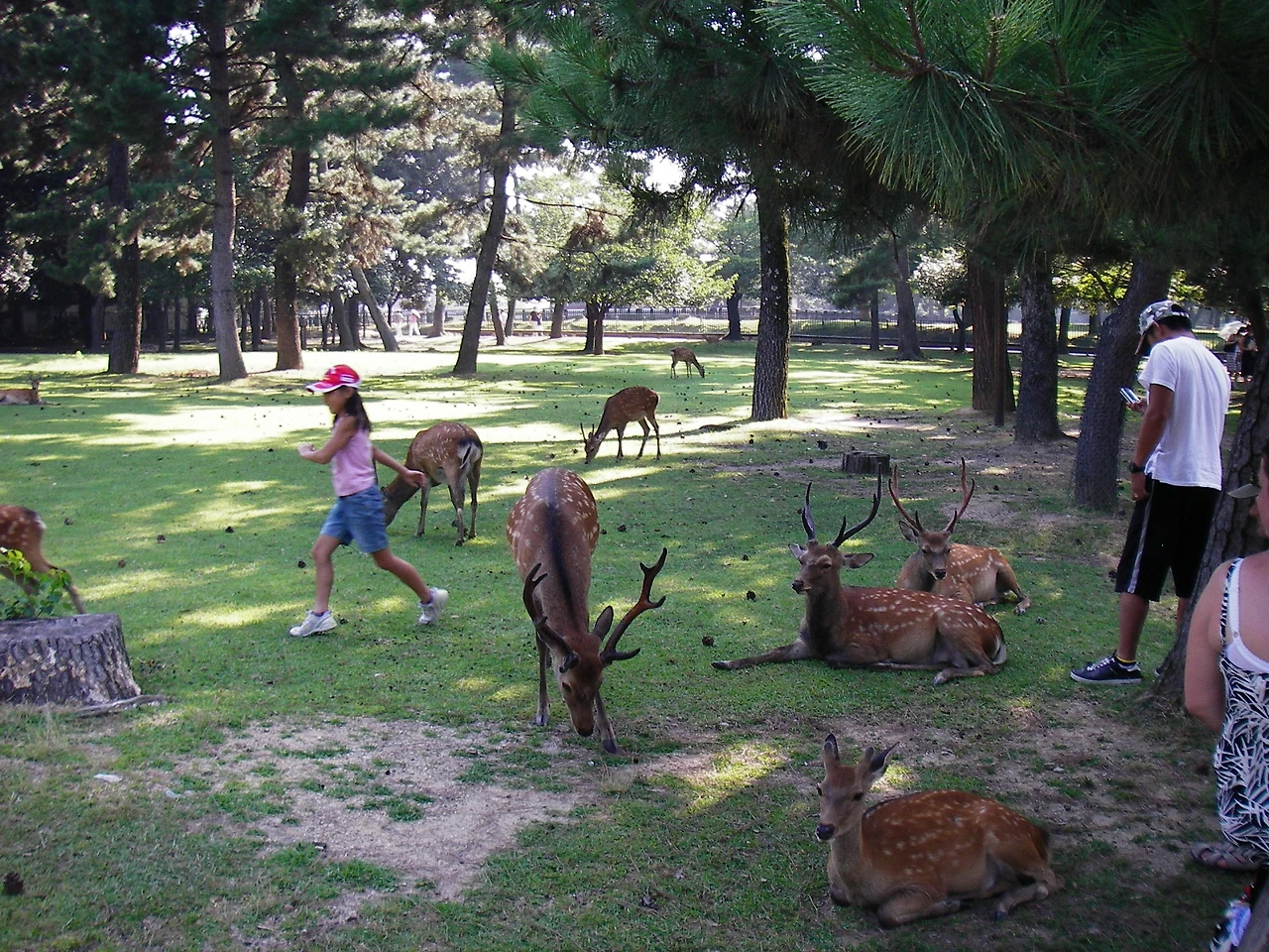교토에 비하면 볼 만한 것이 전반적으로 몰려 있는 것이 특징입니다. 천천히 걸으면서 다녀도 크게 문제는 없습니다. 이 지역의 특징은 사슴입니다. 사슴이 이리저리 어슬렁거리면서 다니며 밥 달라고 합니다. 어린 사슴이야 귀여워서 주지만 뿔이 하늘 높이 올라간 사슴은 막상 들이대면 무섭습니다. 잘못해서 뿔에 받히는 것 보다 조용히 간식주고 달아나는 것이 상책입니다.