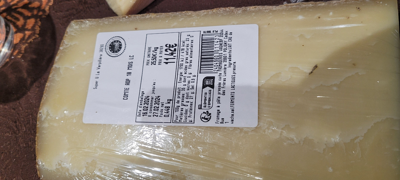 프랑스 부부는 우리를 위해 여러 종류의 치즈를 샀다. 그리고 치즈들이 하나 같이 우리 취향에 잘 맞았다. 냄새가 너무 심하지 않고, 맛이나 풍미가 아주 뛰어났다. 특히 파베 다피누아Pavé d'Affinois 치즈는 잘라보니 속에 치즈가 걸쭉한 액체로 흘러나오는 것이 참 신기했다. 식감도 크리미하고 별다른 향 없이 부드럽게 목을 넘어갔다. 아내가 제일로 꼽은 치즈가 바로 이것이었다. 내 경우, 하나를 꼽을 수 없을 정도로 다 좋았지만, 특히 인상에 남은 게 콤테Comté 치즈였다. 물기가 거의 없이 굳은 이 치즈는 적어도 18개월 이상 숙성된 것이 좋다고 했다. 이 또한 별다른 향 없이 진한 치즈의 맛이 내 혀를 자극했다.