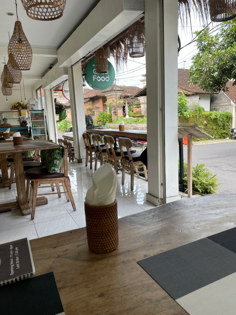 우붓에서 에어컨을 트는 식당은 드문 편이었는데 펌프킨 앤 비트루트도 에어컨을 트는 곳이 아니었다. 식당이 다 뚫려있어서 밖이랑 똑같은 온도라고 생각하면 된다.