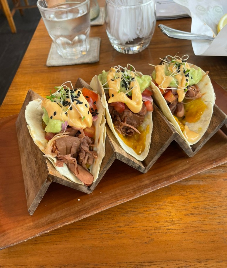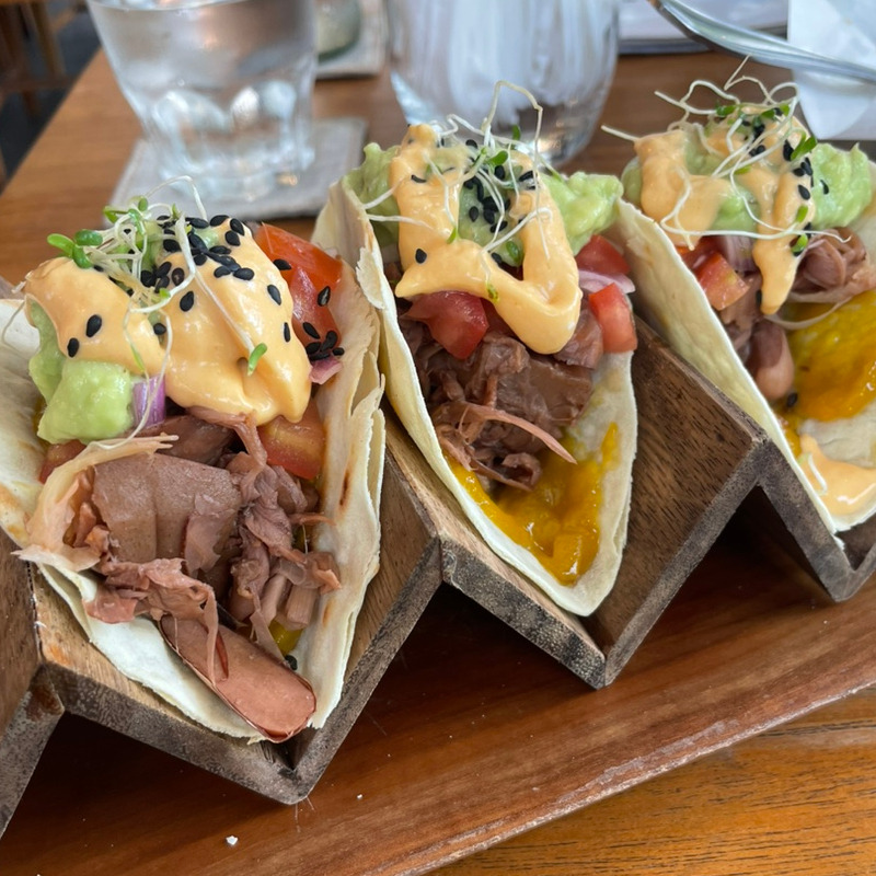 잭푸르트 처음 봤는데 고기가 나온 줄 알고 깜짝 놀랐다. 타코 자체는 상큼하고 괜찮은데, 문제는 여기서도 내가 더위를 먹었다는 거. 문을 다 열어놓고 에어컨을 안 틀어서 음식 기다리는 도중 더위는 실컷 먹고 입맛은 잃어버렸다.