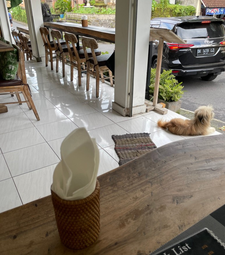 직원들도, 안에 있는 손님들도 놀라기는커녕 아무도 신경 쓰지 않았다. 강아지도 식당에는 관심 없다는 듯 눈길 한번 주지 않고 입구에만 한참을 누워있었다.