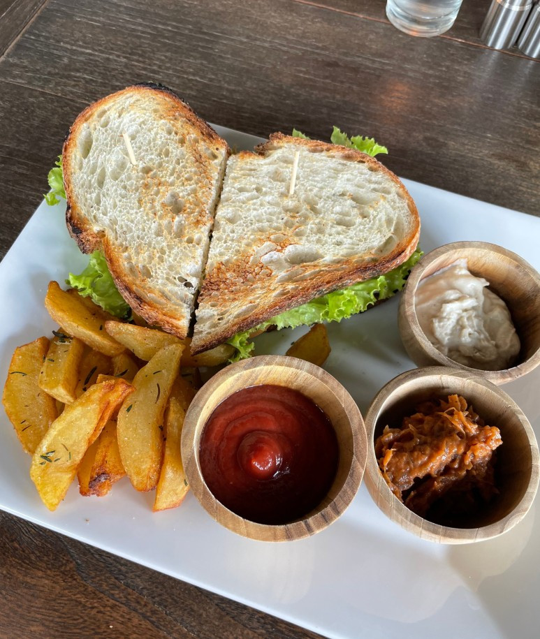 알라야 리조트에서 길만 건너면 바로 앞에 있는 더 샌드위치 바. 비건 식당은 아닌데 비건 메뉴가 있을 것 같아 물어봤다.