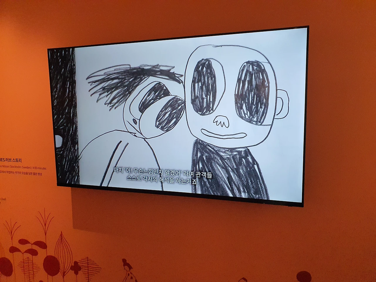 홍보 포스터를 보고 예상했지만, 일러스트 전시였다. 그림책 작가가 꿈인 나한테 일러스트 그림은 몰입도가 가장 높다. 직원분이 "곧 도슨트가 진행되는데 원하시면 이쪽으로 오세요." 했는데 오늘도 거절했다.