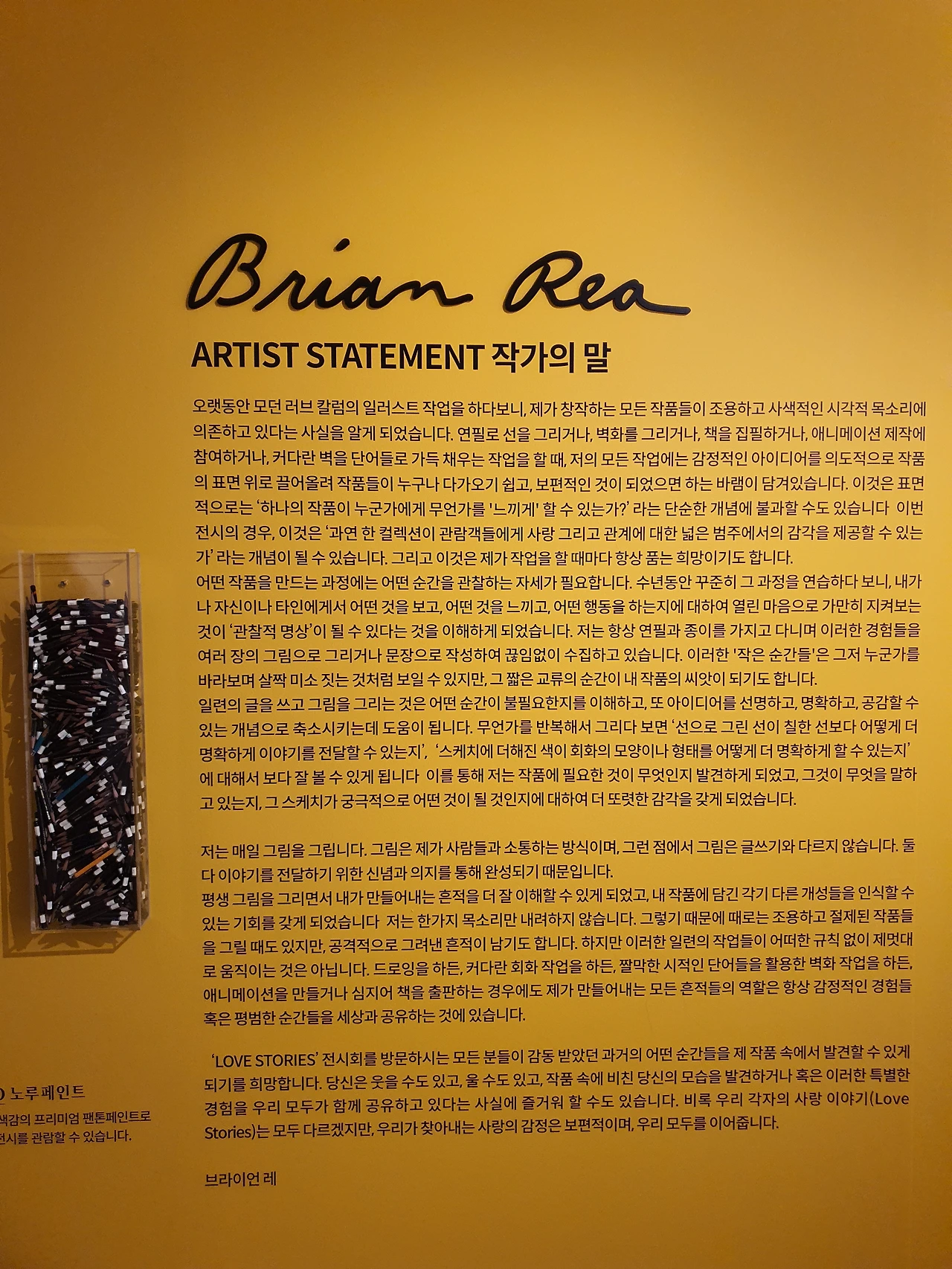 브라이언레는 사랑이라는 키워드를 주제로 그림을 그리는 작가다. 특정 키워드에만 초점을 맞춰서 작품을 만드는 것도 꽤 즐거운 작업이라는 생각이 들었다.