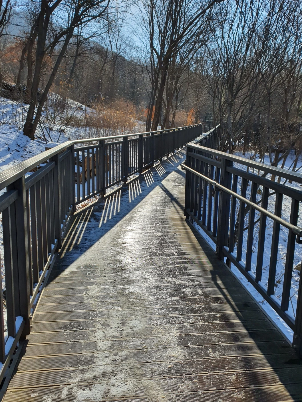 미끄러질까 바닥만 보며 걷다가