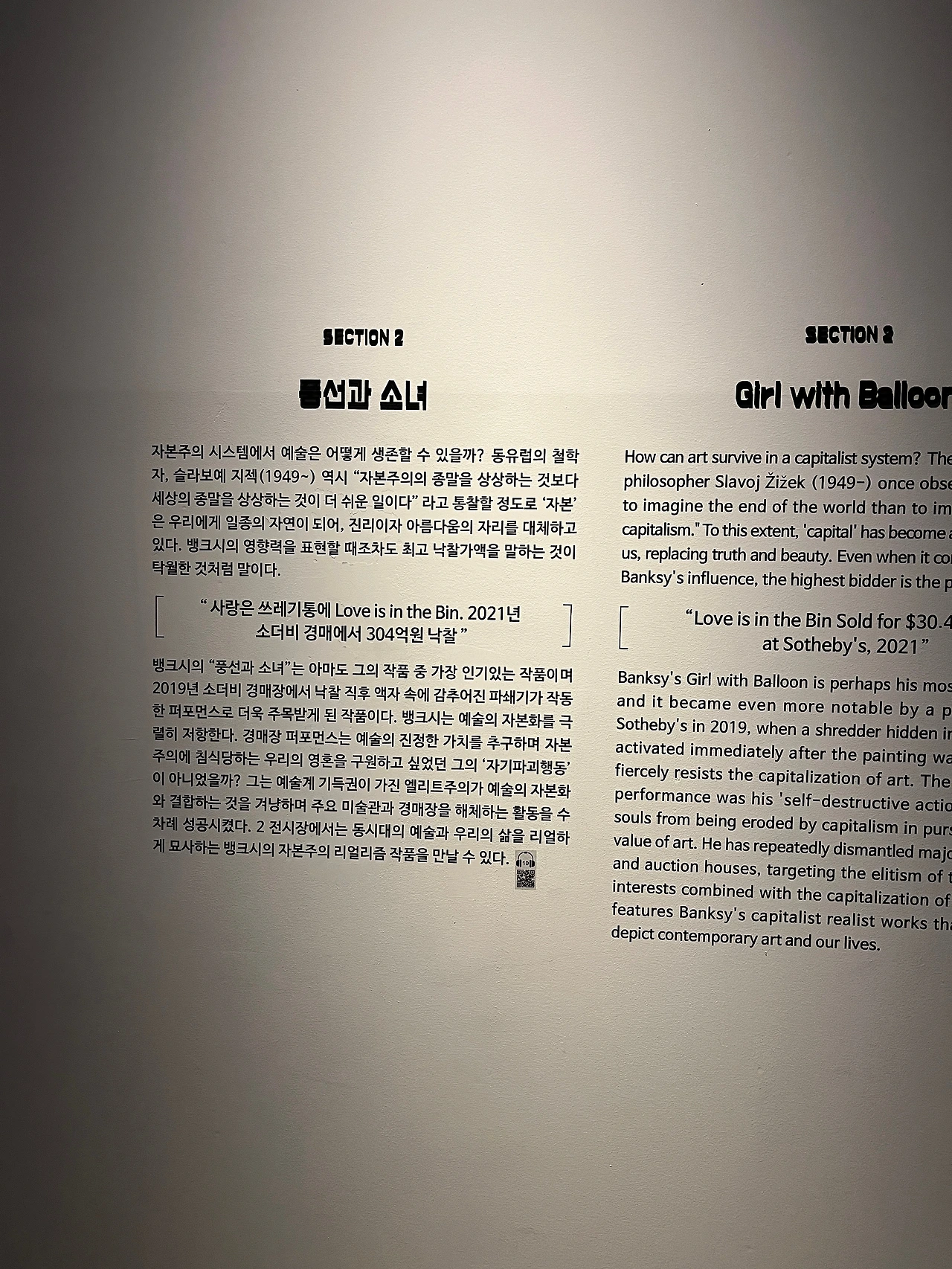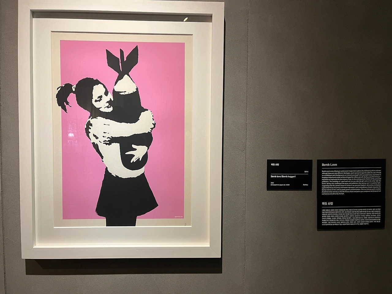 뱅크시는 단순한 그라피티 예술가가 아니다. 대중과 소통하고, 사회적 메시지를 던지는 ‘대중의 예술가’라는 점에서 그의 인기는 설명된다. 그의 메시지가 단순히 예술을 넘어서 현실 세계에 대한 저항으로 다가오는 순간, 대중은 뱅크시의 외침에 응답할 수밖에 없다. 전시를 보고 나니, 그가 왜 이토록 매력적인 인물인지 이해할 수 있었다.