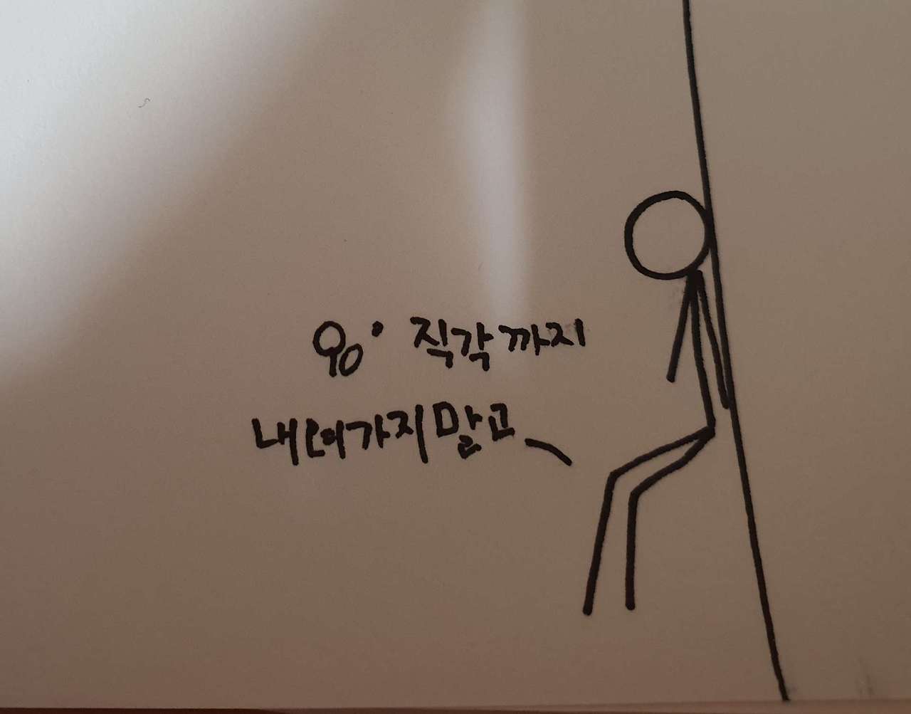 벽에 등을 댄 채로 천천히 몸을 내리면서 편한 각도를 찾아야 한다.