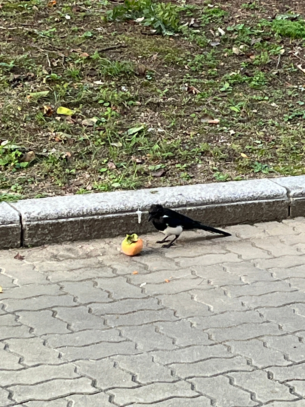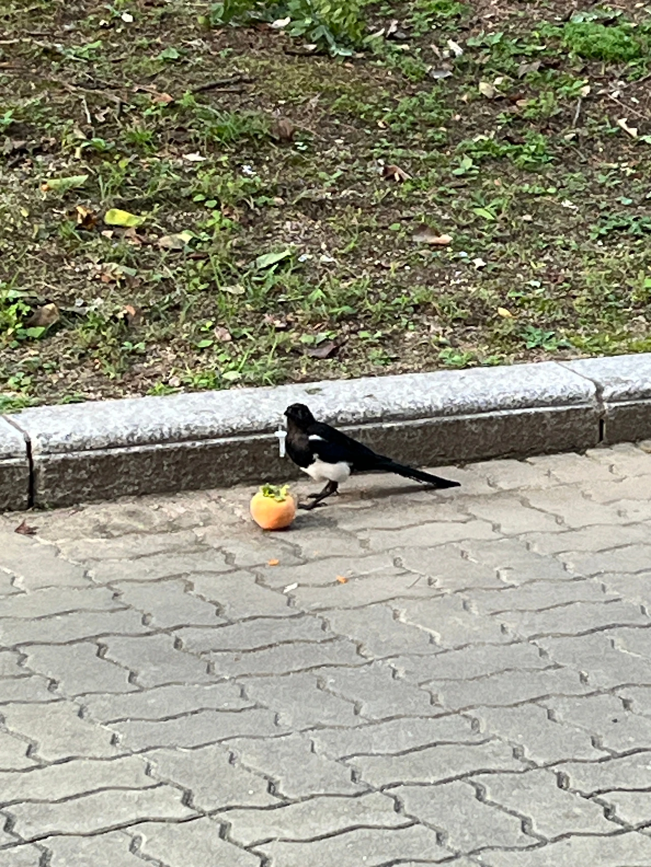 힐끔거리지만 절대 ’ 감‘을 떠나지 않는 까치가 귀여웠다.