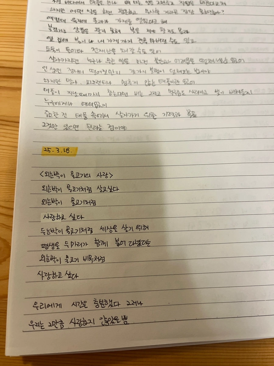 그래서 독서노트를 뒤적이며 소설의 문장들을 따라 썼다.