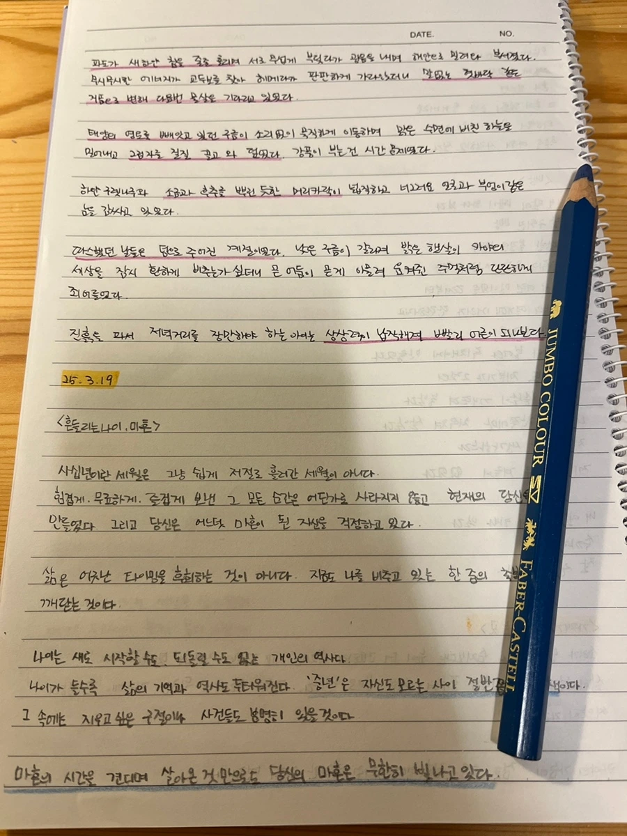 오늘 필사한 문장은 내 40대를 쓰다듬고 있었다.
