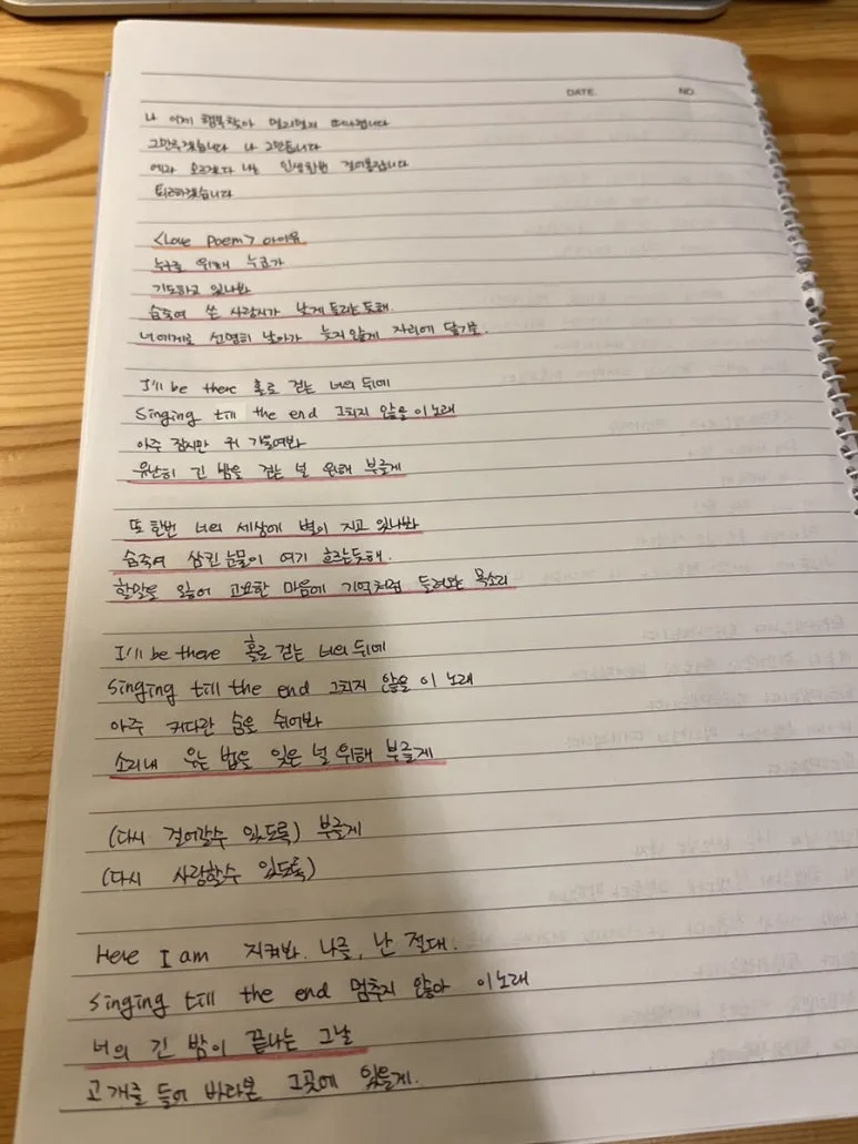 가사를 따라 적으면서 손이 아픈 것도 잊었다.