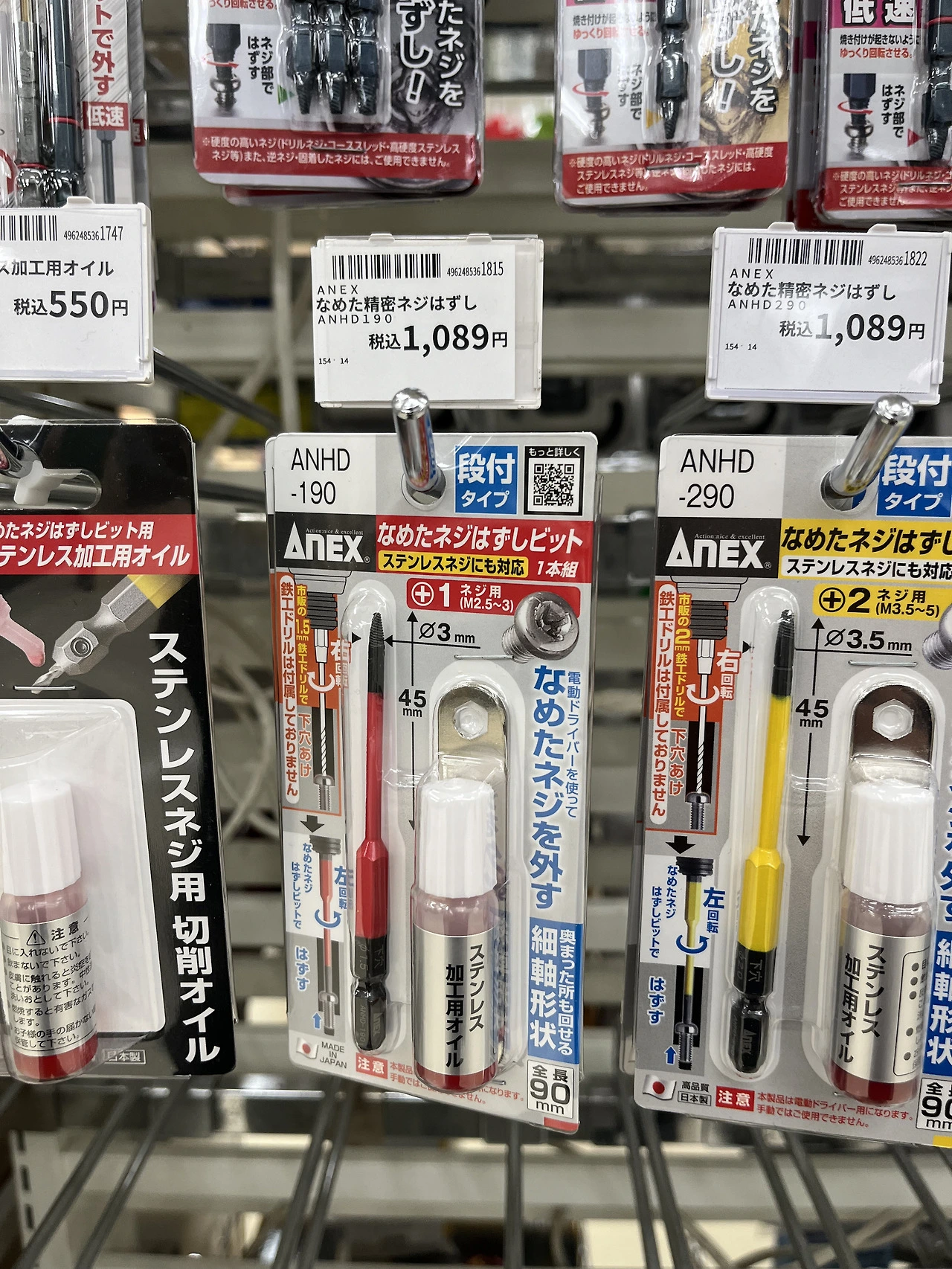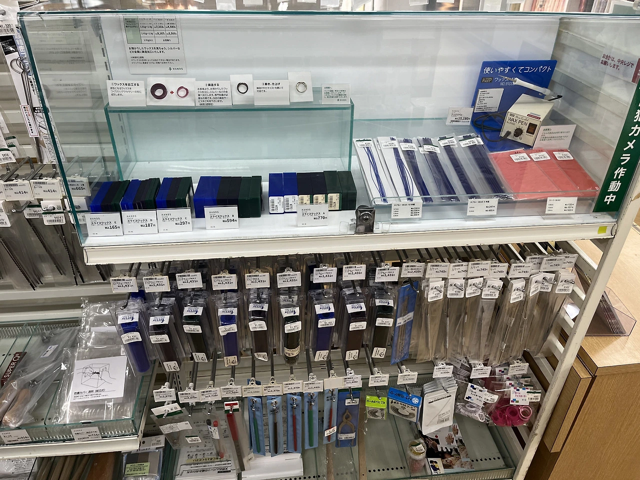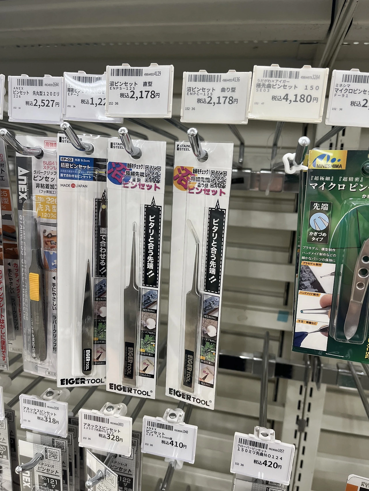 한쪽에는 미니어처 관련 도구들이 있어서 세밀한 핀셋들도 많이 있었습니다. 그리고 일명 히다리탭이라고 불리는 볼트리무버도 팔았는데요. Anex가 유명한데 그것도 종류별로 팔더라고요.