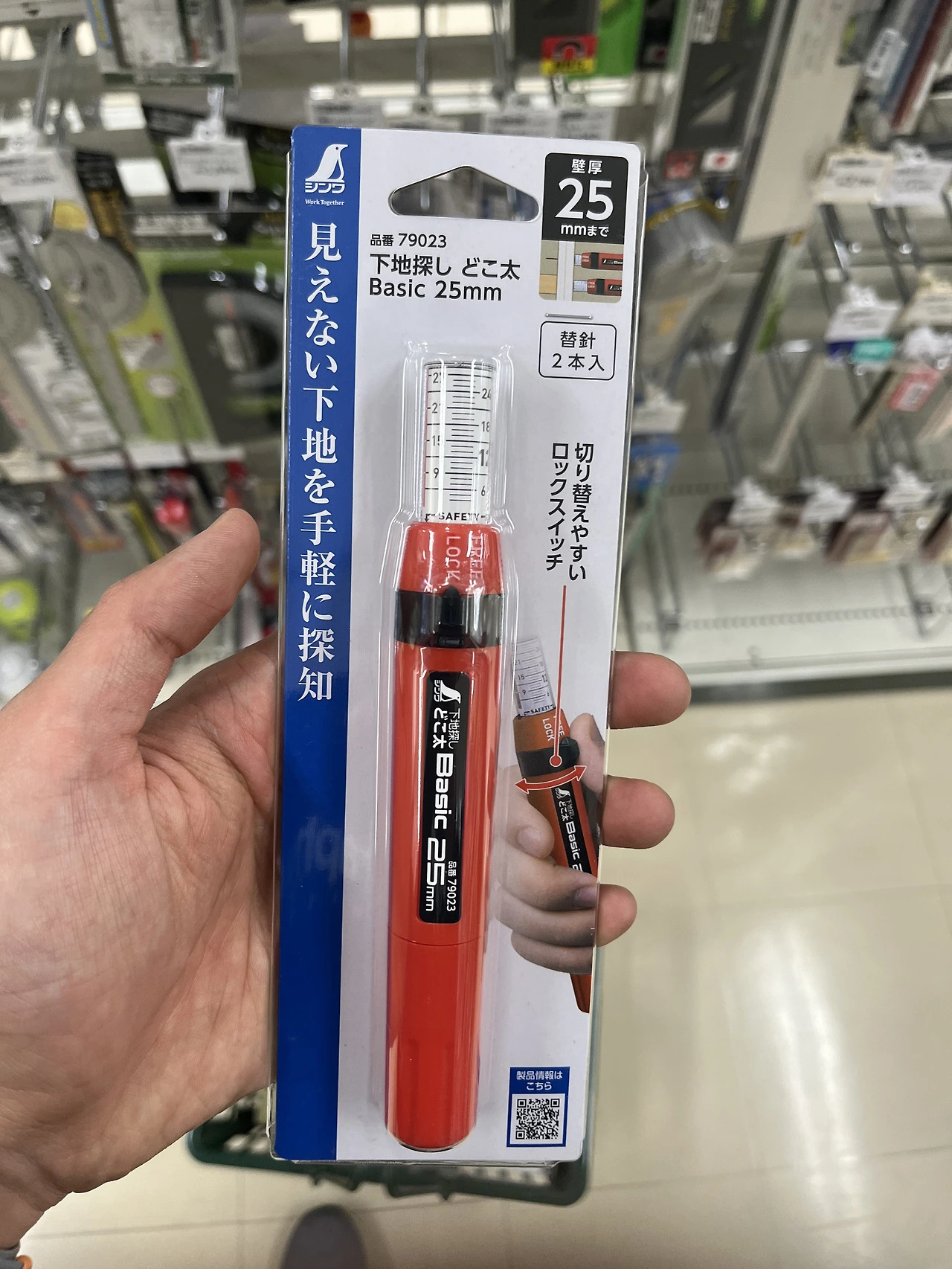 왼쪽에 있는 도구는 벽의 단면을 그대로 본뜰 수 있는 도구인데 보통은 플라스틱으로 크게 구현한 경우가 많습니다. 그런데 여기서는 금속판 재질로 견고하게 디자인되어있어 신기했어요. 오른쪽은 벽에 무언가를 박거나 설치하기 전에 석고벽 뒤쪽에 무엇이 있는지 미리 찔러보고 측정할 수 있는 도구입니다. 저 펭귄모양 브랜드가 신기한 게 많더라고요.