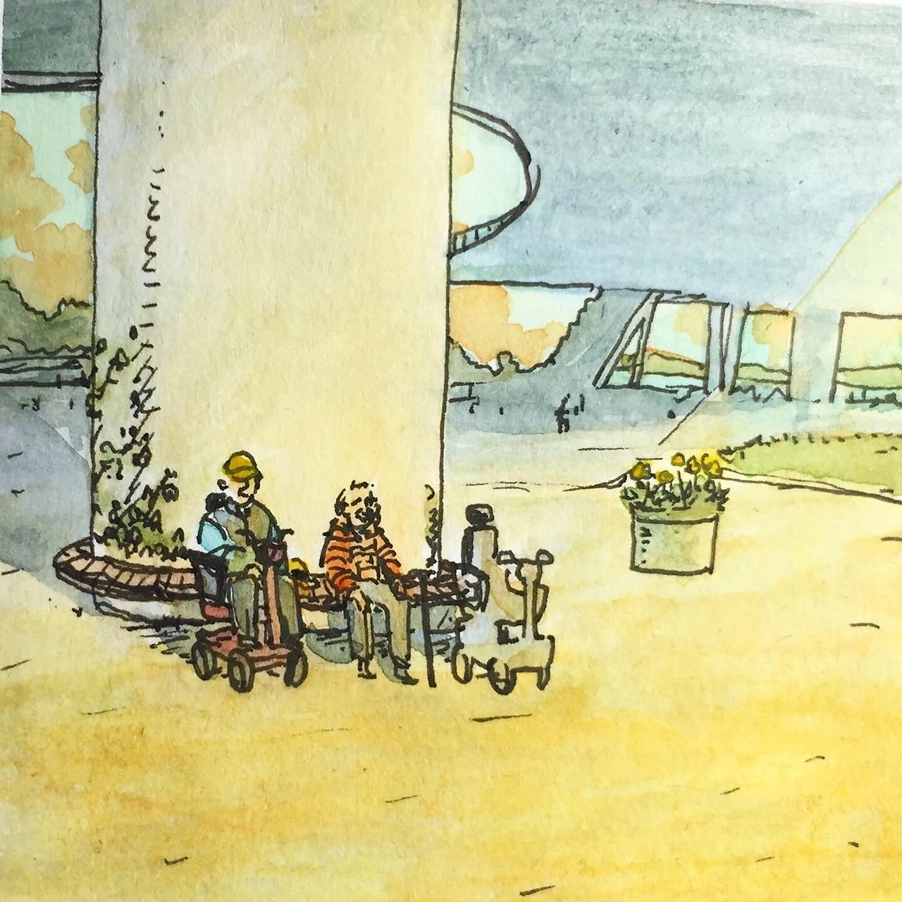 다리 아래 할아버지들이 볕을 쬐며 나란히 앉아계셨다. 주중의 한가로운 자연이 오로지 그들의 것이었다.