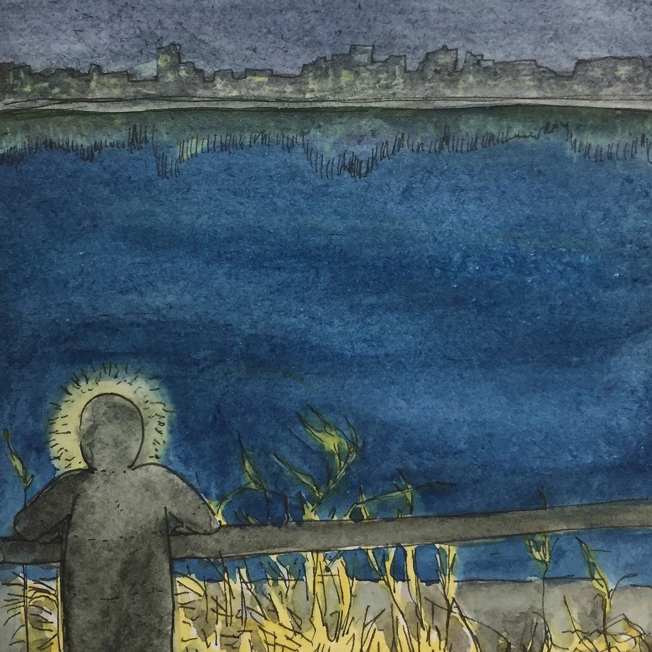 어제 그냥 밤에 자전거를 타고 한강을 갔다. 마른 갈대의 흰 선이 검푸른 강 위로 드리워 아름답다. 오늘 그냥 그림을 되는대로 그렸다. 뭐가 나왔다.