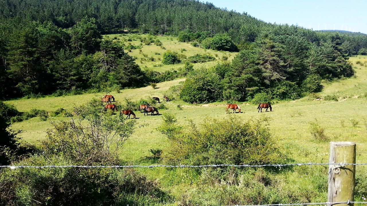 아니나 다를까 산비탈 즈음에 말들이 풀을 뜯고 있었다.