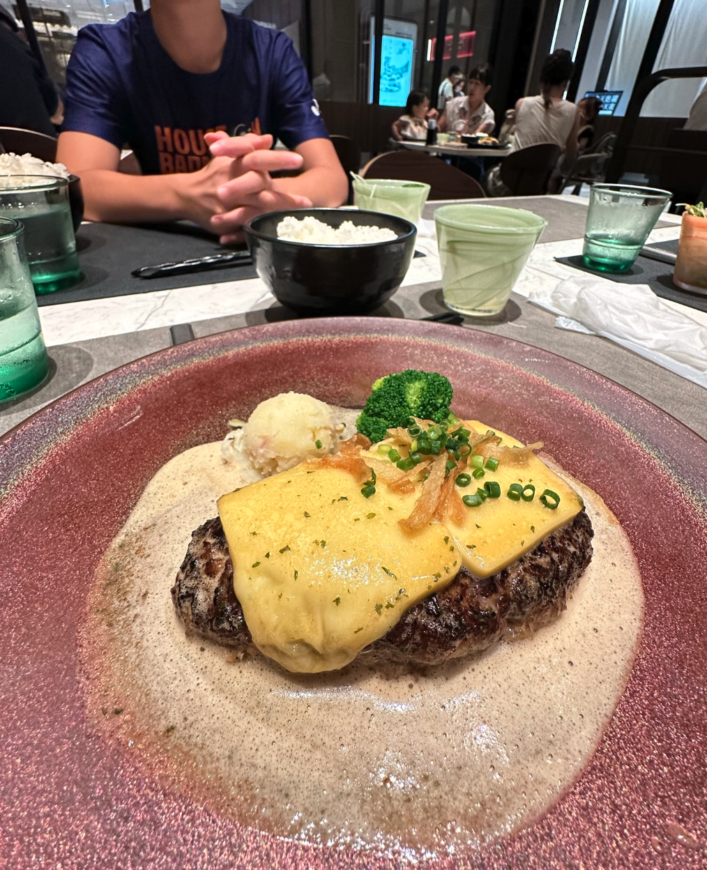 일본 가기 전에는 전혀 떠오르지 않던 음식 중 하나가 함박 스테이크다. 어느 쇼핑몰의 레스토랑 리스트에서 사진을 보는 순간, '이건 또 먹고 가야지' 싶었다. 막상 그때는 먹지 못했지만, 나중에 기회가 닿는다. 소스와, 치즈가 올라간 함박 스테이크가 어우러진 맛이 일품이었다.