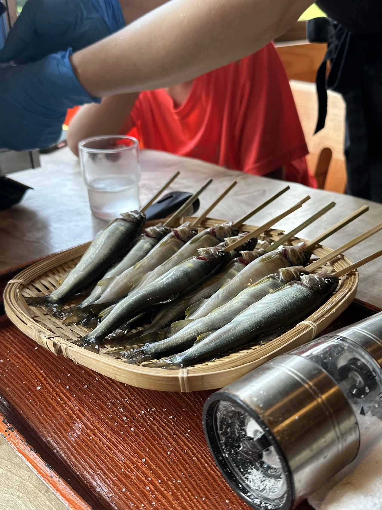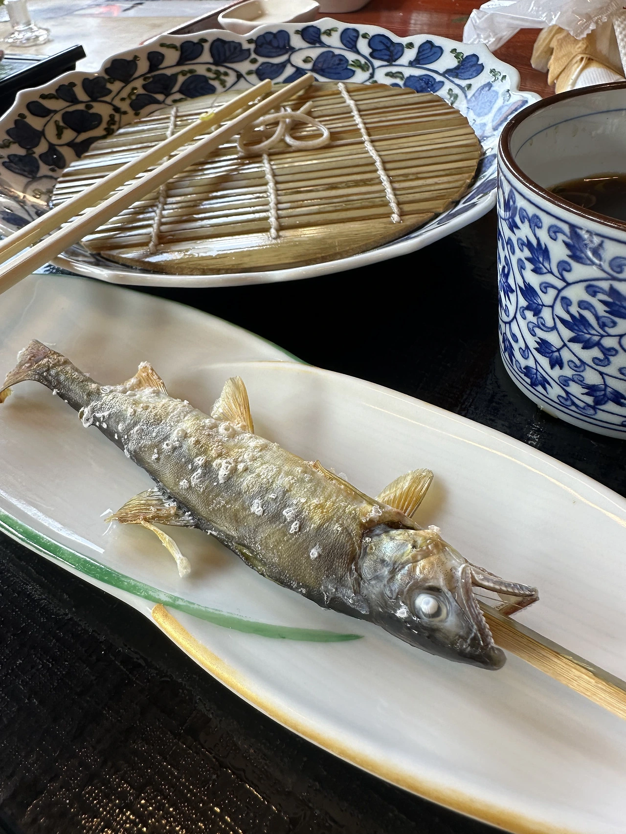 남편이 뭔가를 시켰고, 우리는 기다렸다. 곧 생선 무리가 등장했다. 가지런히 접시에 누워 입에 나무 막대기가 꽂힌 채 펄떡거리고 있었다. 아 뭔가... 미안했다. 방금 전까지 헤엄치고 있었을 텐데, 어느 커다란 손에 잡혔을 테고, 그 손이 너의 입에 무지막지하게 막대기를 꽂아 버렸겠지. 그리고 넌 곧 죽겠지...