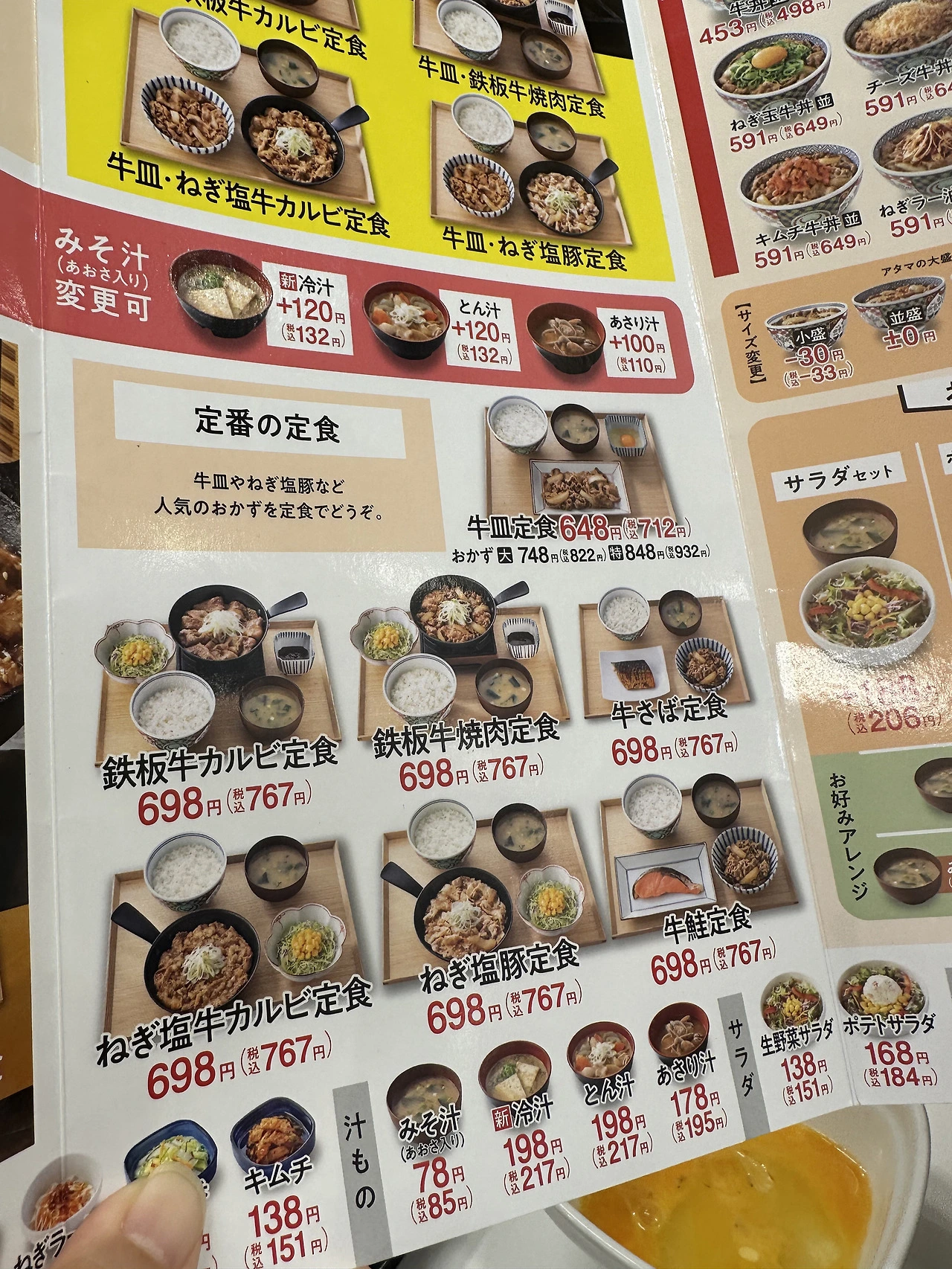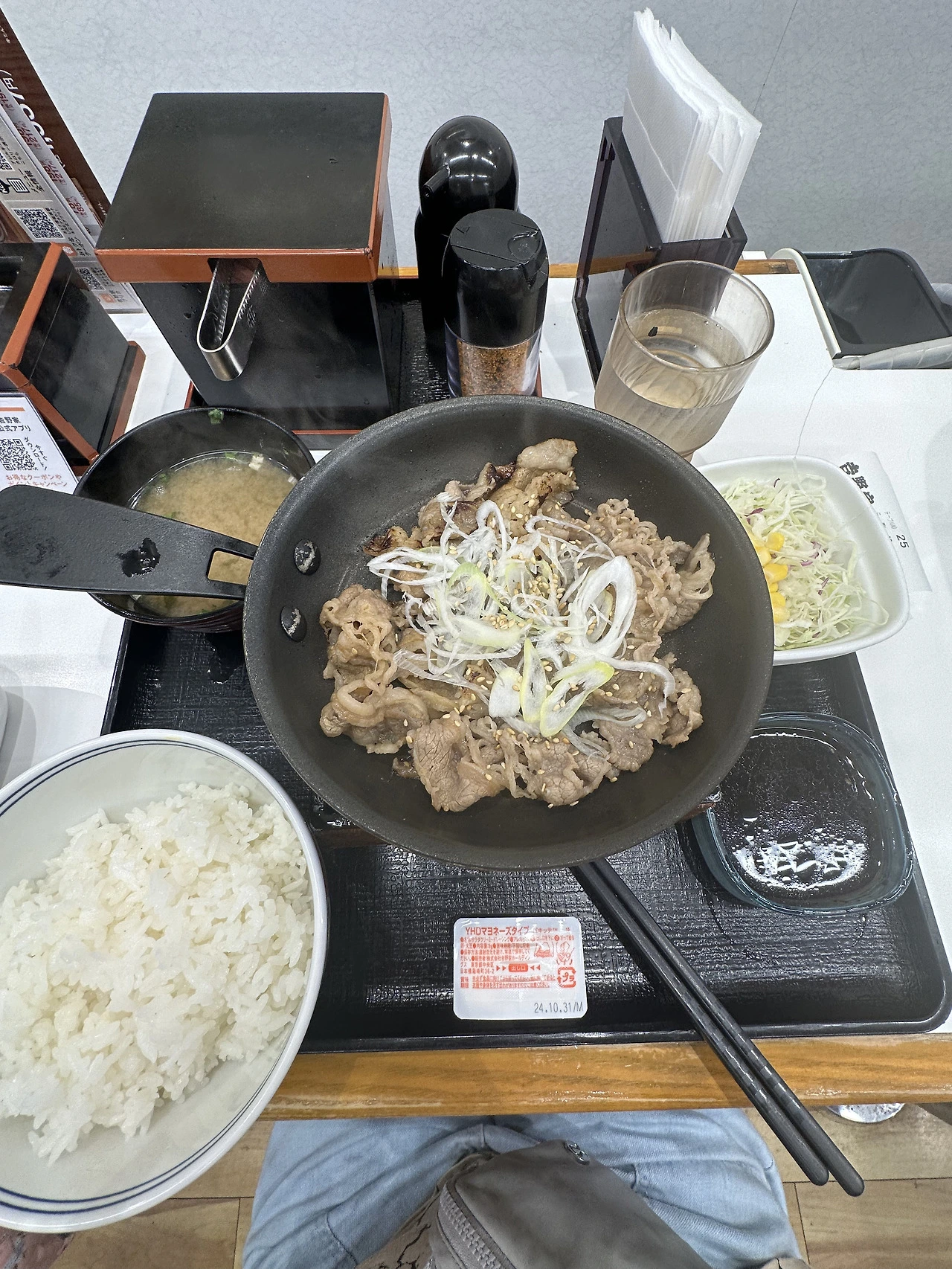 역시 규동은 내 취향이었다. 마지막 날 먹었을 때는 작은 팬에 고기가 구워져 나온 것을 선택했는데 탁월한 선택이었다. 불맛이 살짝 들어가 일반 규동과는 다르게 느껴졌다. 거기에 얇게 썬 양배추로 만든 샐러드와 미소국까지. 행복했다.