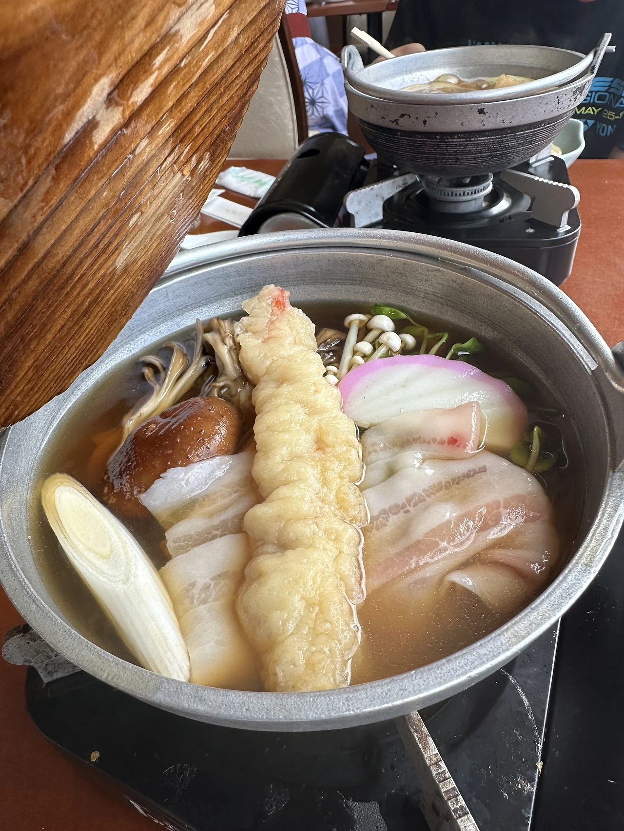 아이들 유리공예 체험을 하러 갔다. 바로 시작할 수가 없어 바로 앞에 있던 소바집으로 들어갔다. 여전히 배가 부른 상태였던 터라 가볍게 시켰다. 가츠동과 우동 소바 같은. 가츠동은 집에서 가끔 만들어주던 메뉴지만 이런 우동은 일본에서만 먹을 수 있는 게 아닐까?