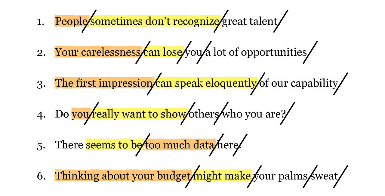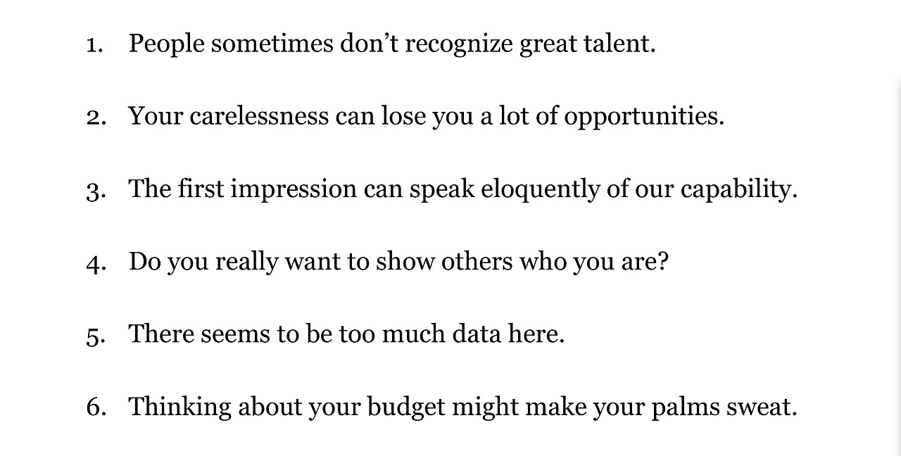 첫 인상은 / 설득력 있게 말해 줄 수 있다 / 당신의 역량에 관해. //
