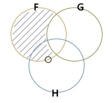그런데 빗금이 치어진 구역엔 원소가 있을 수 없습니다. 그러니 원소는 해당 2개 구역 중 빗금이 치어지지 않는 구역에 존재할 겁니다. H에는 속하지만, F에는 속하지 않는 그곳. 이 논증은 타당합니다.