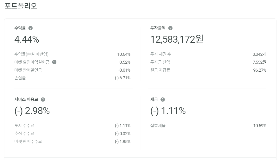 개꿀팁: 신규 등록되는 상품보다 다른 투자자가 판매하는 상품에 투자하는 게 훨씬 이득이다. 만기도 짧고, 원리금균등상환 방식의 경우에는 만기에 가까워질수록 이자 금액이 낮아져 절세 효과가 커진다. 원리금수취권을 액면 가격보다 할인된 가격으로 내놓는 경우도 물론 많다.