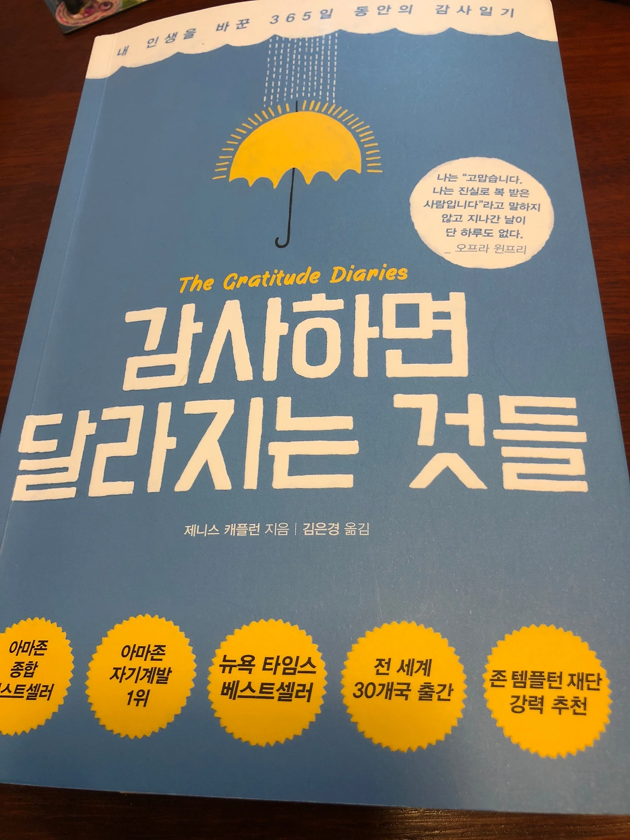 올 한해 달리기를 하면서 운동이 나에게 미치는 긍정적인 효과를 경험했다. 하지만 감사일기는 여전히 나에게는 궁금한 세상이었다. 다시 감사일기를 쓰면서 그 느낌이 무엇인지 알고 싶었다. 그리고 감사일기에 대해 조금 더 알아봐야겠다는 마음을 먹고 관련 책을 뒤졌다. 그러다 우연히 제니스 캐플런이 쓴 <감사하면 달라지는 것들>이라는 책을 만나게 됐다.
