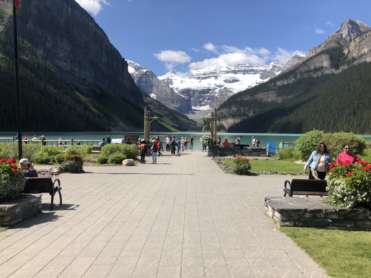 걱정을 한가득 안고 위니펙에서 출발한 우리는, 2박 3일만에 별탈없이 밴프에 다다랐다. 차도 아이들도 다행히 밴프까지의 긴 여정을 잘 버텨줬다. 밴프에서, 우리의 첫번째 목적지는 “당연히” 레이크 루이스였다. 레이크 루이스에 도착한 우리는 환호성을 지르지 않을 수 없었다. 지난 겨울 태블릿을 통해 사진으로 봤던 레이크 루이스보다 훨씬 더 아름다웠다. 동화 속 마을이 눈앞에 놓여 있는 착각이 들 정도였다. 말 그대로 한 폭의 그림이었다. 에머랄드 빛 호수와 파란 하늘 그리고 눈 덮인 산까지, 모든 게 완벽했다. 한동안 눈을 떼지 못하고 호수만 바라봤다. 2박 3일 동안 차를 타느라 힘들었지만, 주차장에서 차를 대느라 고생은 했지만, 그런 것이 전혀 문제되지 않았다. 눈 앞에 있는 아름다운 풍경 하나만으로 모든 것을 용서할 수 있었다.