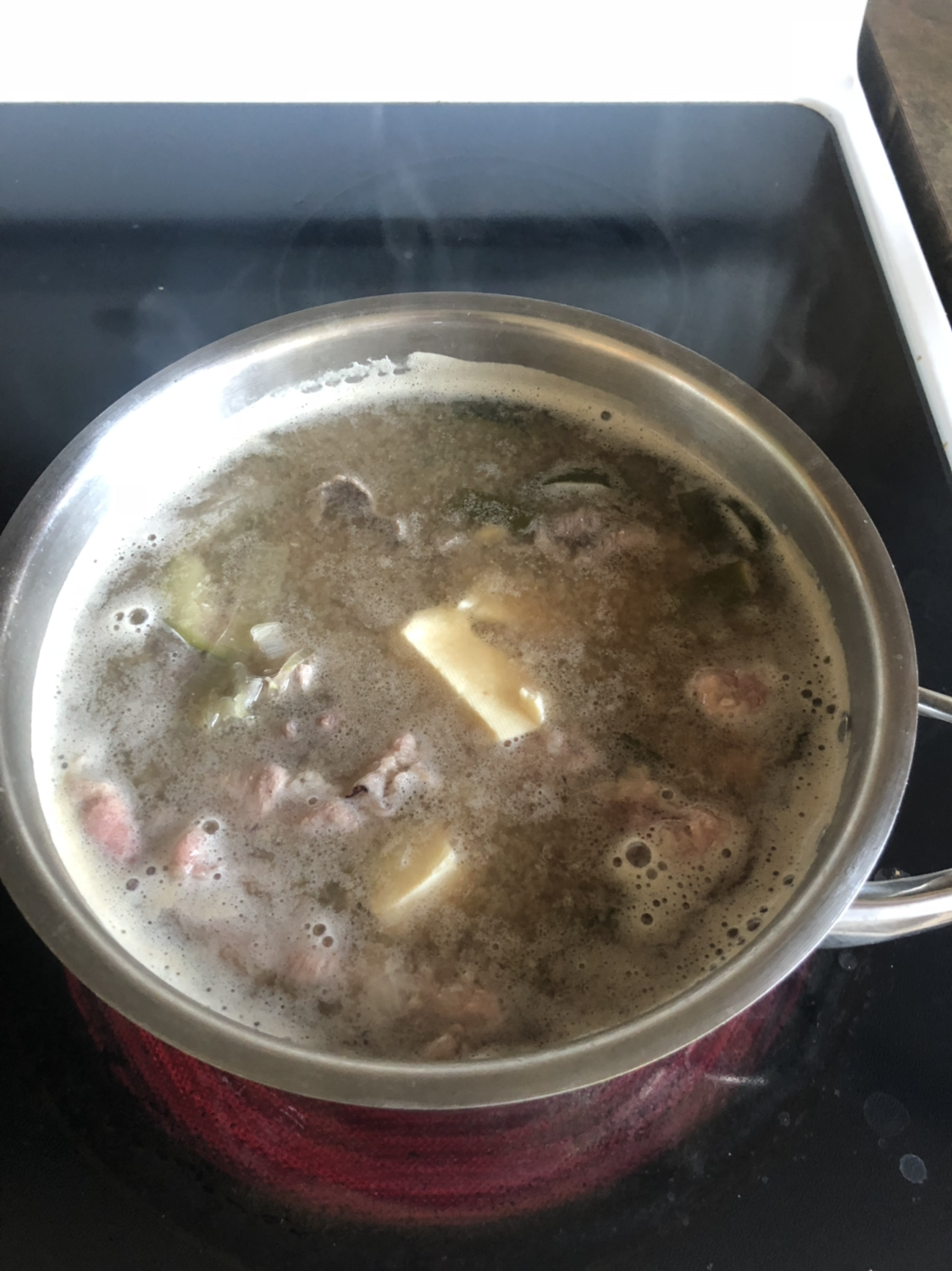 “된장찌개 끓일 때는 처음부터 된장을 풀어서 멸치와 같이 끓여도 괜찮아. 아이들은 차돌박이 된장찌개를 좋아하는데, 차돌박이는 된장찌개를 다 끓이고 먹기 전에 살짝 데쳐 주면 돼”