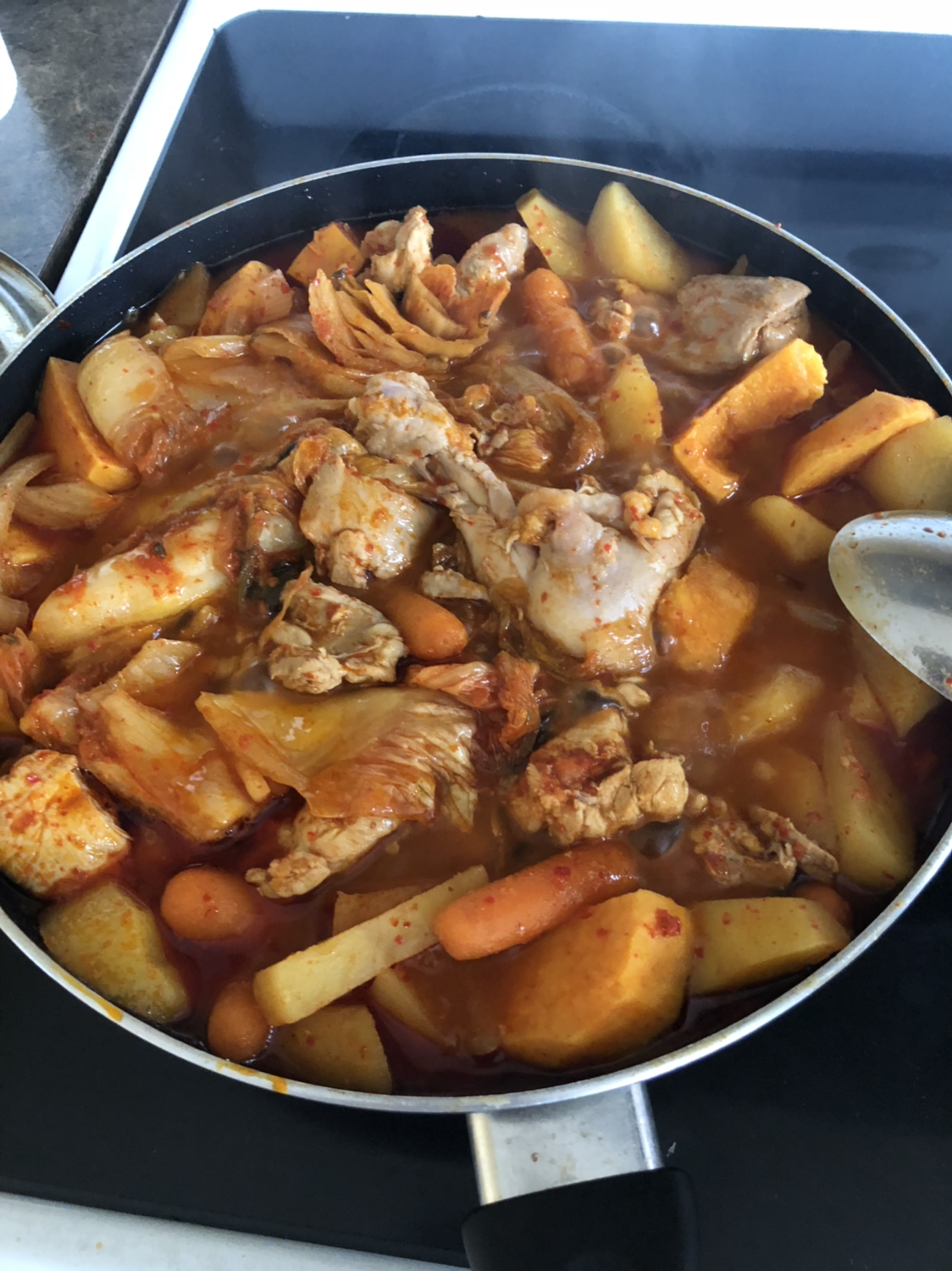 아이들이 아주 맛있게 잘 먹었다라는 아름다운 결말을 쓰고 싶었지만 아이들이 아주 좋아하지는 않았다. 그동안 자기들이 먹던 닭볶음탕에 비해 부족한 듯 싶었다. 그럼에도 불구하고 나는 너무 좋았다. 나름, 새로운 “요리”에 도전했다는 것 자체로 만족스러웠다.