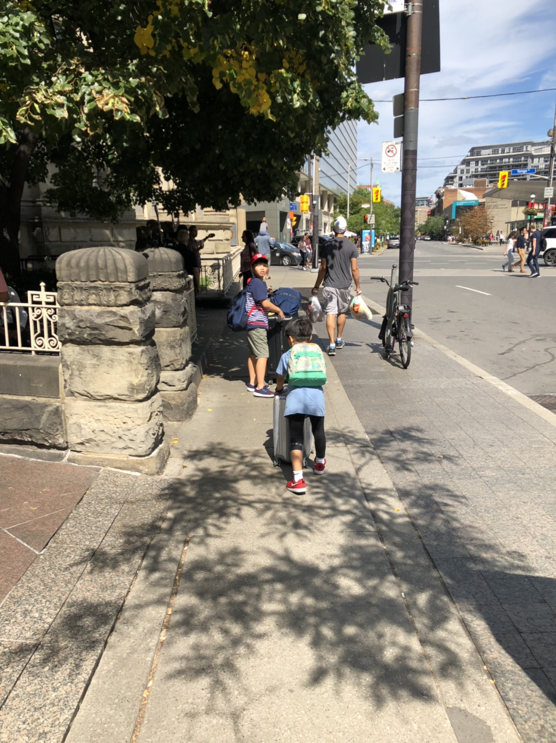 문제는 그 다음이었다. 유니온 스퀘어 역에서 호텔까지는 거리가 꽤 됐다. 걸어서 15분 정도는 족히 걸리는 거리였다. 그렇다고 역에서 호텔까지 택시를 타고 갈 수도 없는 상황. 결국 우리는 짐을 끌고 호텔까지 걸어가기로 했다. 캐리어 3개에 손에 든 가방 2개 그리고 각자의 백팩 3개까지, 이렇게 총 8개의 짐을 들고 가야 했다. 아이들에게 캐리어 하나와 본인들의 백팩을 각각 맡기고, 나는 나머지 짐을 들었다. 그리고 천천히 호텔 쪽을 향해 걸어갔다.