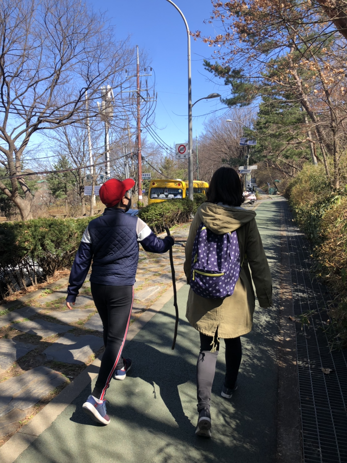 이날 나는 어쩌다보니 둘째와 손을 잡고 길을 가게 되었다. 엄마만 찾던 엄마바라기 둘째였지만 이날만큼은 아빠와 함께 하는 시간이 싫지 않은 듯했다. 1등 하기를 좋아하는 아이의 마음을 생각해 우리는 빠른 걸음으로 다른 가족들을 제치고 둘만 빠르게 산길을 걸었다.