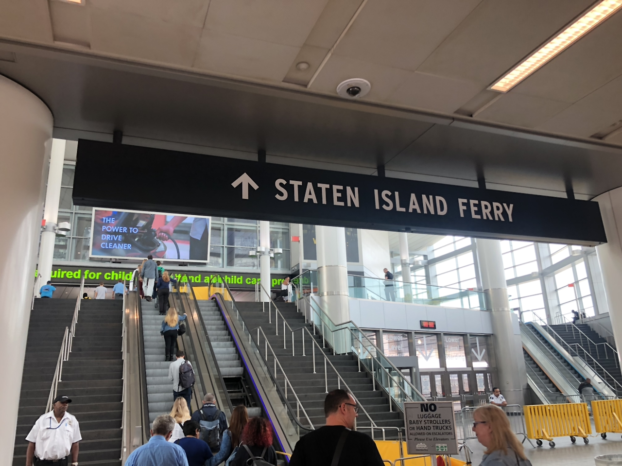 아이의 설명대로 자유의 여신상을 무료 페리를 타고 둘러봤다. 아이는 페리를 타러 가는 길에 블로그 사진으로 본 표지판을 가리키며 길을 안내하기도 했다. 그렇게 자유의 여신상을 둘러볼 수 있었다. 비록 배를 타고 주변을 둘러본 것이긴 했지만 아이는 자유의 여신상을 보며 신기해했다.