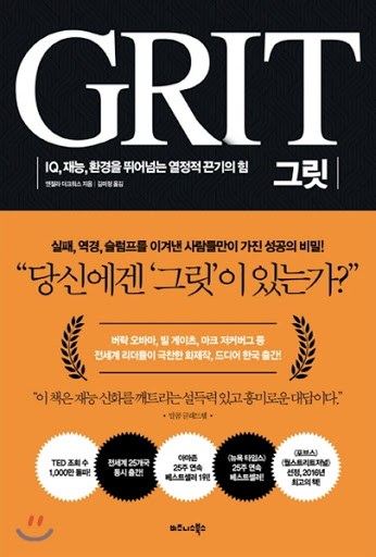 그릿은 "성장(Growth), 회복력(Resilience), 내재적 동기(Intrinsic Motivation), 끈기(Tenacity)의 줄임말로 성공에 결정적인 영향을 미치는 투지를 나타낸다고"(네이버 지식사전 참조) 하는데요. 결국 그릿이란 목표를 달성하기 위해 시련에 굴하지 않고 끊임없이 노력하는 것이라고 이해하면 될 것 같아요.