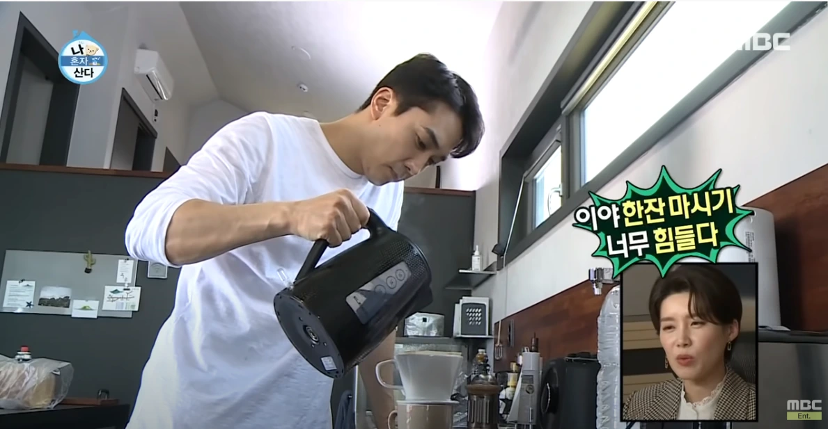 그가 커피를 직접 내려 마시는 모습도 인상적이었는데요. 바다를 보며 마시는 커피는 더 특별할 것 같았어요. 최근들어 여행을 하고 바다를 보고 싶다는 생각이 간절했는데 그 마음에 불을 지르시더라고요.