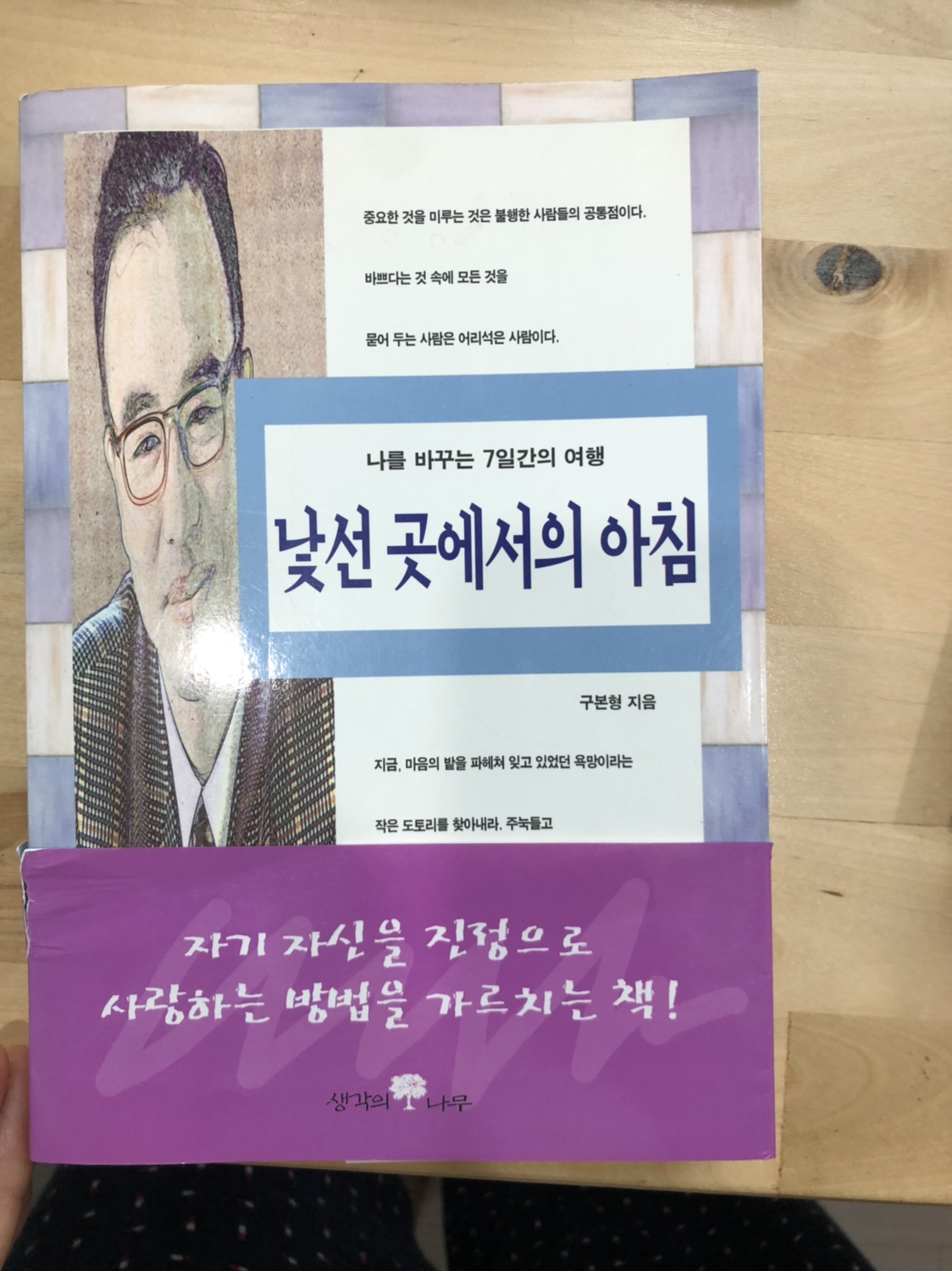 변화에 대한 이야기를 하다보니 생각나는 책이 <낯선 곳에서의 아침>이라는 책인데요. 나를 바꾸는 7일간의 여행이라는 부제처럼 나를 바꿔가는 것도 하나의 여행이라는 생각이 들게 만드는 책입니다. 그래서 마지막으로 이 책을 소개하고 싶습니다.