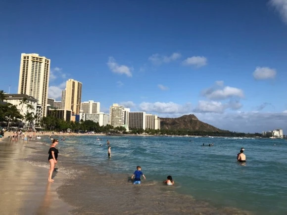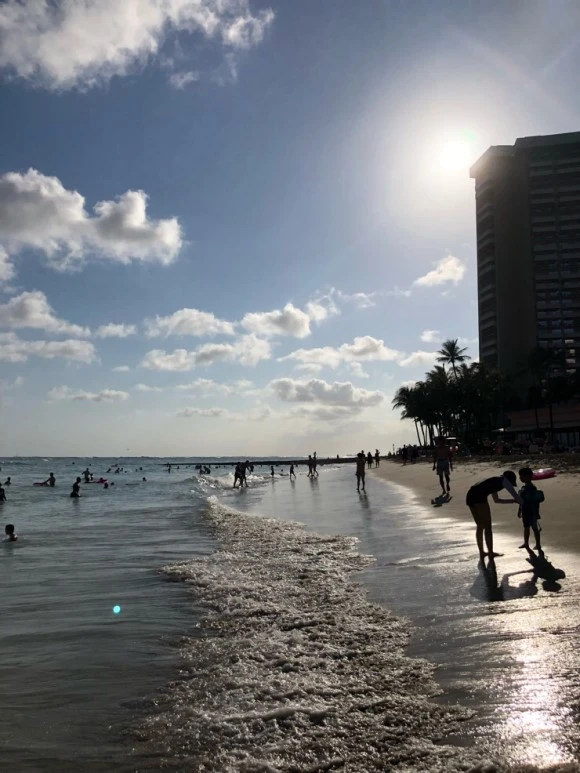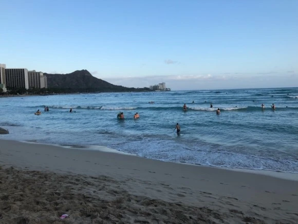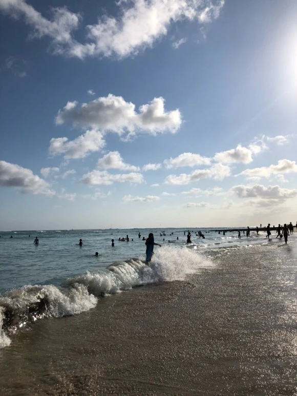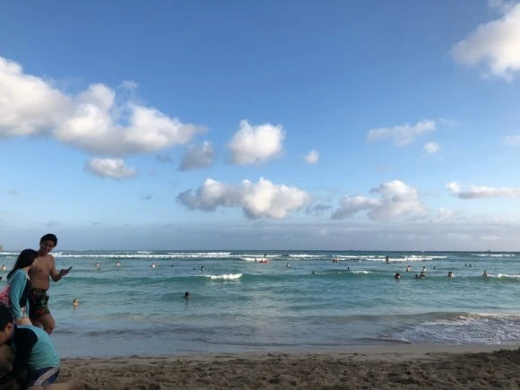 숙소에 도착하니 씻기가 애매했다. 시간이 너무 일러서 더 놀고 싶었다. 기왕 바닷물을 제대로 씻지 못한 상황이니 바닷물에 한번 더 들어가기러 했다. 숙소 앞에 있는 와이키키 해변으로 우리는 다시 나갔다. 며칠전 이곳에 오자마자 잠깐 걸었던 비치가 전부였는데 바다에서 노는 건 어떤 스펙타클한 경험을 줄 지 기대가 됐다.