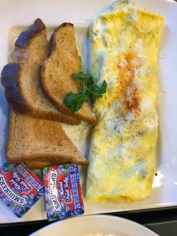 쉬림프 알프레도 오믈릿은 나와 큰 아들이 좋아할 맛이었다. 크림소스와 해산물이 잘 어우러진 맛이었다.