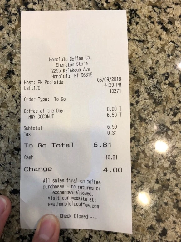 와이키키 해변에 도착하기 전 호놀룰루 커피에서 커피를 한잔 샀다. 이곳의 대표 메뉴로 보이는 허니 코코넛 콜드브루를 주문했다.