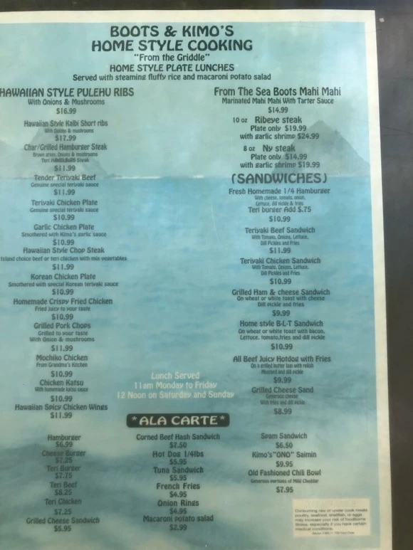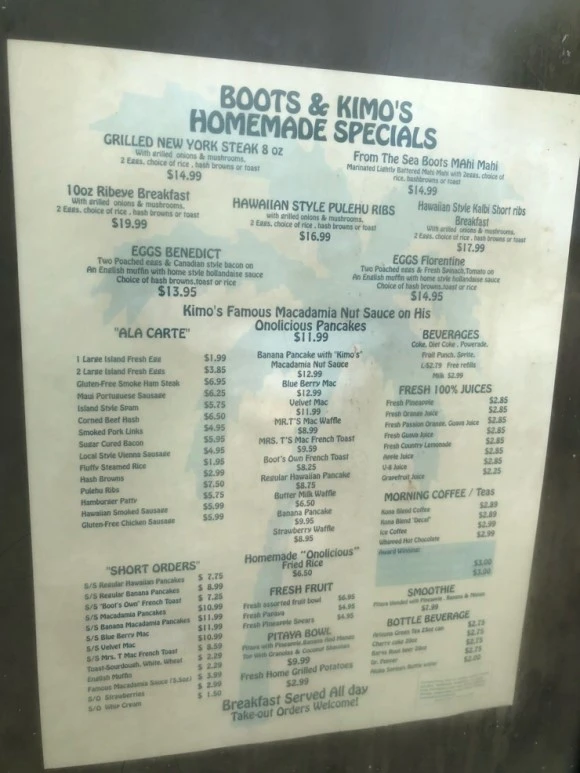 바로 “부츠 & 키모스(Boot's & Kimo's)”라는 곳이었다. 마카다미아 팬케이크로 유명해서 여행책이며 블로그에도 여러번 소개된 집이기도 하다.