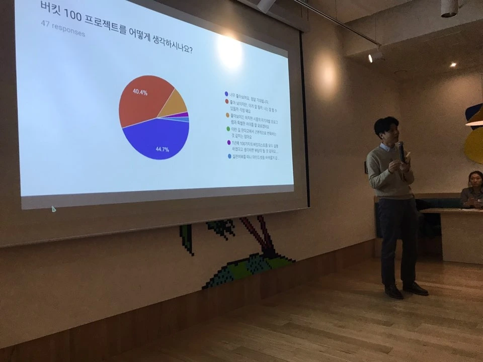 마지막으로 하이프 코리아의 최명화 대표의 버킷100 프로젝트의 효과와 향후 계획에 대한 이야기가 있었다.