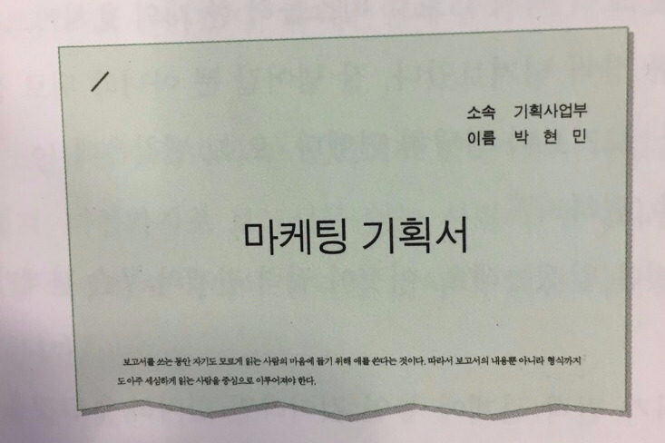 보고서의 목적은 "통과"에 있습니다. 보고서 작성의 가장 큰 보람은 내가 쓴 보고서대로 일이 진행되는 것이겠죠. 이를 위해 하나하나 세세히 따져봐야 한다는 것을 잊지 마세요. 내가 굳이 이런 것까지 신경써야 하나라는 생각을 버리시는 게 좋아요. "이런 것까지" 신경쓰는 자세를 가져야 해요. 모든 것은 마음가짐에서 비롯된다는 사실을 잊지 마세요. 제가 젤 후회되는 점이기도 했고요.