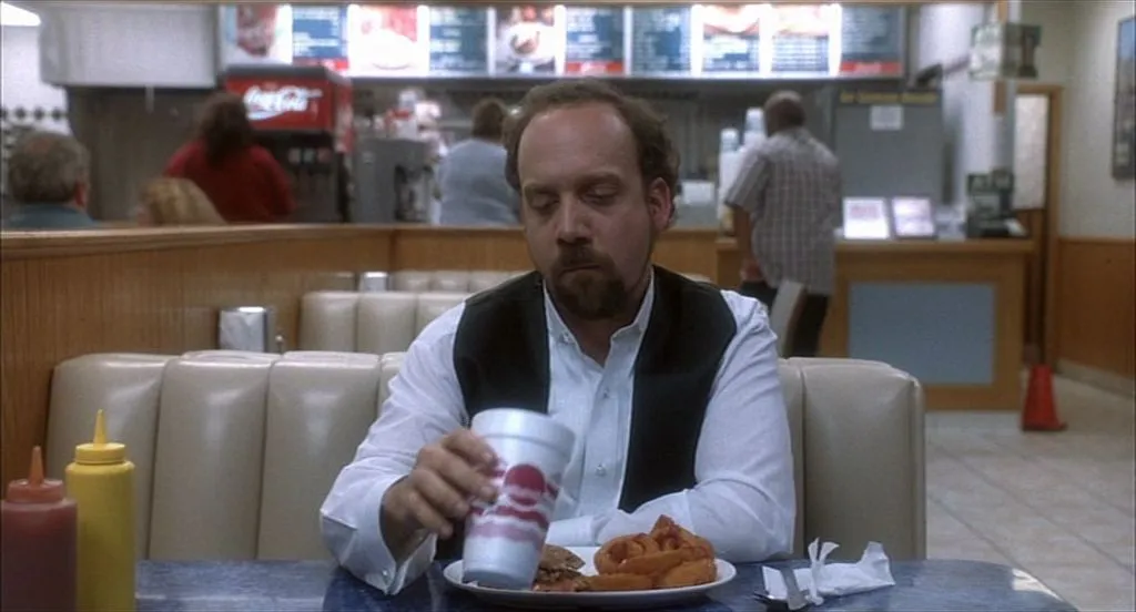 잭의 결혼식에서 전처 빅토리아를 만나 임신했다는 이야기를 듣고 또 한번 좌절하는 마일즈. 그는 곧바로 집으로 가 무언가를 뒤져 꺼낸다. 결혼 10주년에 따고 싶어 아껴두었다던 61년산 샤또 슈발 블랑. 특별한 날 소중한 사람과 함께 마시고 싶었던 이 귀한 와인을 그는 홀로 패스트푸드점에서 1회용 컵에 따라 벌컥벌컥 들이켠다. 집착했던 미래의 모습은 무너지고, 값비싼 와인은 싸구려 음료 신세로 전락하고 만다. 그렇게 모든 것이 끝난 것처럼 보인다.