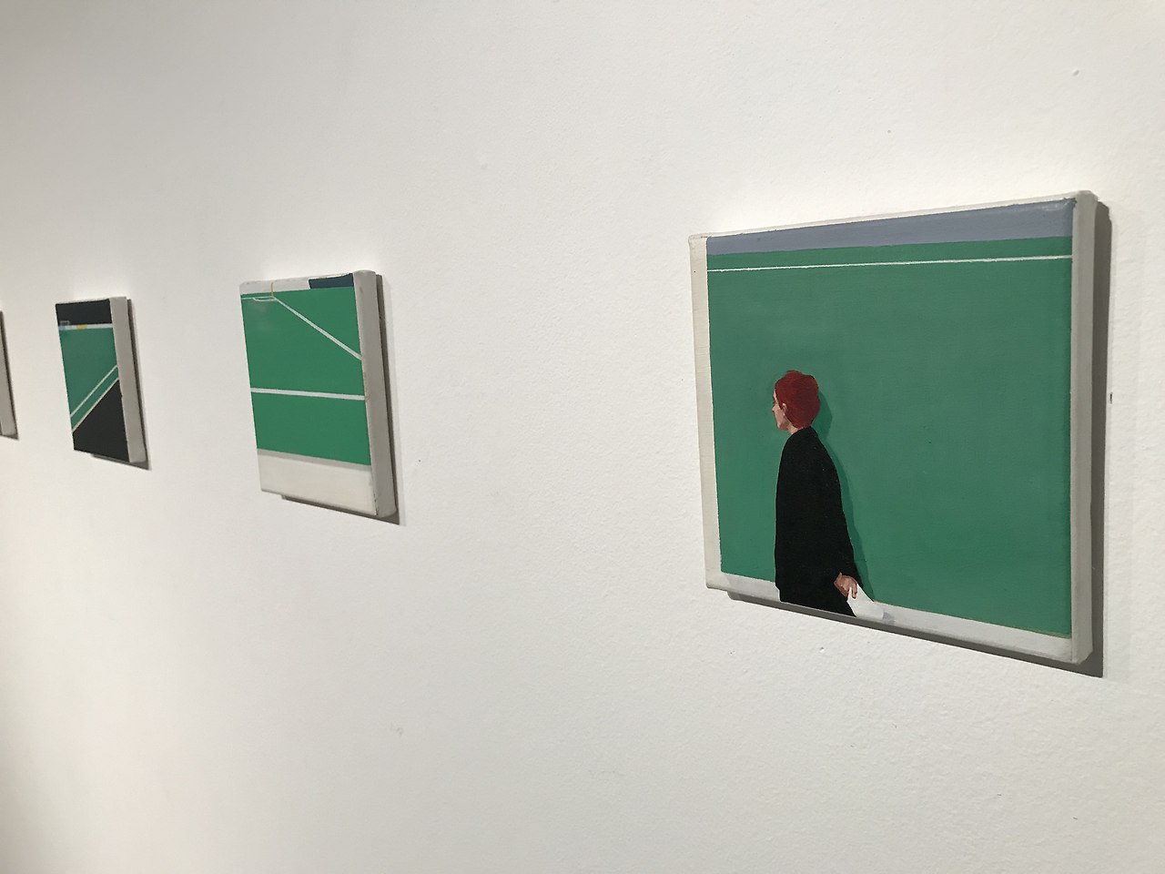 팀 아이텔의 그림을 보면서 나는 (시간 간격을 길게 둔) 연속 사진을 보는 듯한 착각에 빠진다. 같은 공간을 거니는 동일한 인물 하나를 설정한다. 검은 겨울옷을 입고 뒷짐을 진 채 경기장에 들어선 사람이 몇 번의 계절을 거쳐 여름옷을 입고 화면 밖으로 나간다. 공통점은 바라본다,는 것. 경기장은 거기 그대로 있고, 사람은 변화한다. 그동안 그(그녀)에게 무슨 일이 일어났을까. 경기장을 바라보는 시선엔 어떤 변화가 생겼을까.