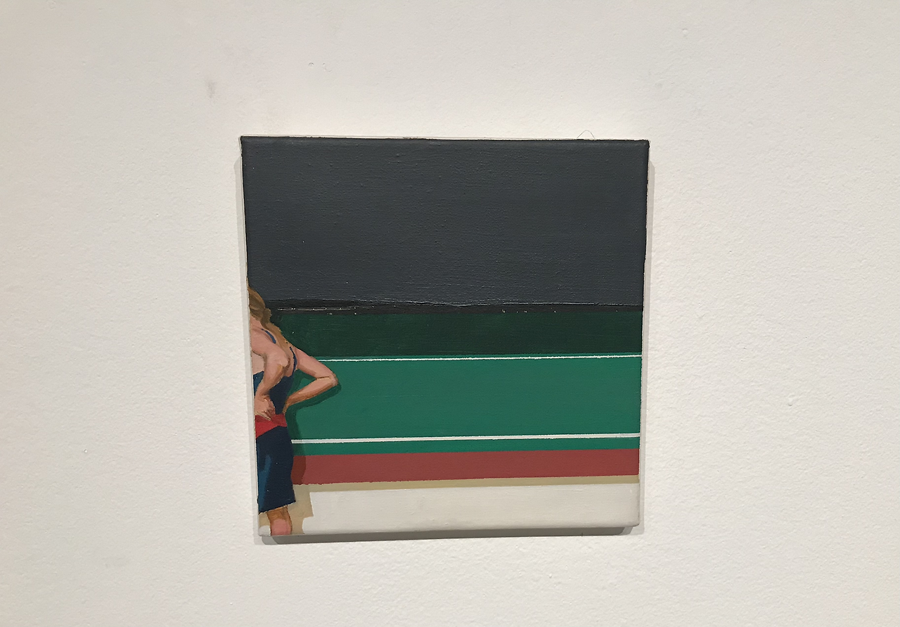경기장 그림을 보는 두 인물(혹은 한 인물)의 잔상이 계속 남는다. 그림 속 인물. 그 인물을 바라보는 그림 바깥의 나. 나는 경기장을 바라보는 누군가의 뒷모습(옆모습)을 바라본다. 우리는 함께 경기장이라는 공간(혹은 재현된 그림)을 응시한다. 우리는 세 사람인가 두 사람인가 한 사람인가. 우리의 시선은 어떻게 어긋나고 어떻게 모아지는가.
