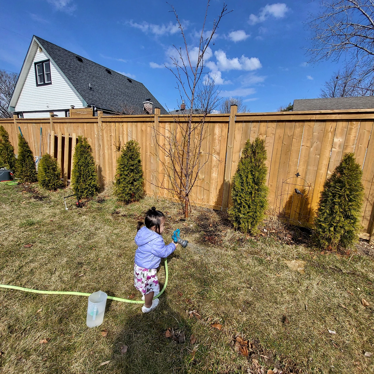 우선, 주택의 장점. 역시나 아이가 뛰놀 수 있는 풀과 흙이 있는 뒷마당은 주택의 큰 메리트가 아닐까 싶다. 봄에는 작은 채소도 심고 가끔 토끼나 다람쥐가 뛰어놀며 여름에는 작은 수영장을 만들어서 신나게 놀았다.