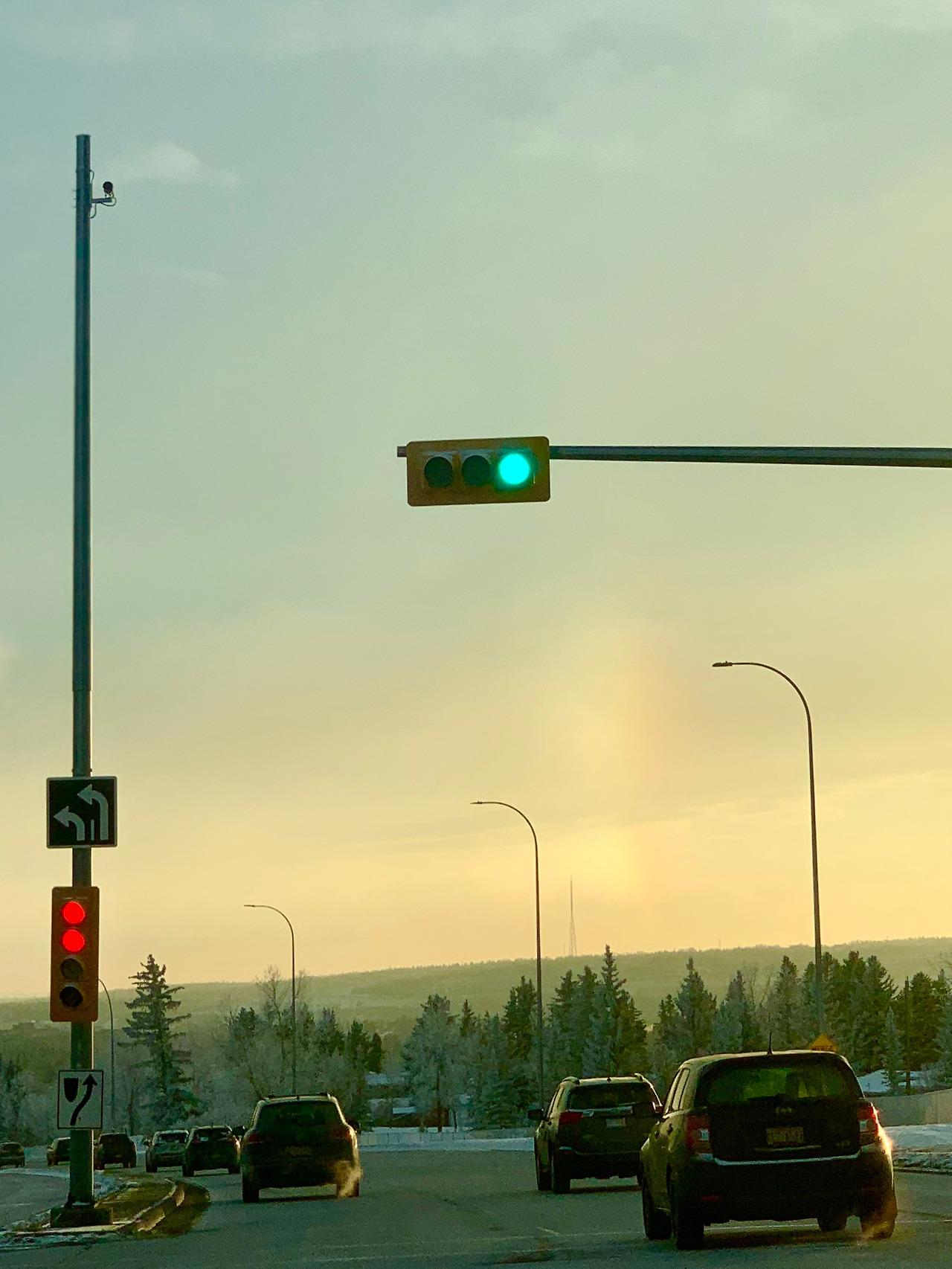 운전 중, 옆 좌석에 앉아 있던 아들이 탄성을 지르며 순간적으로 찍은 사진인데. 제대로 잘 잡히진 않았지만 무지개가 분명했다.