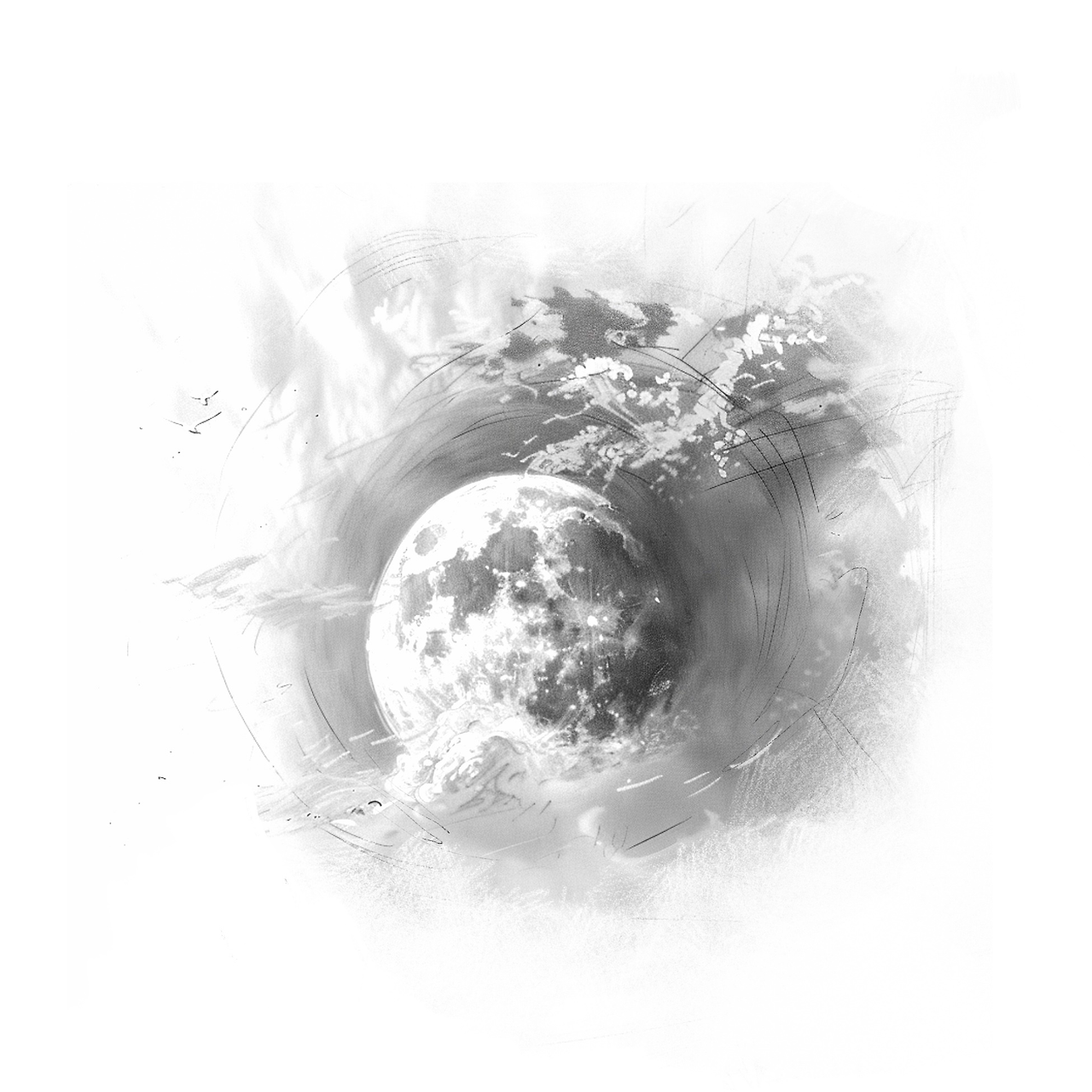 하얀 달이 떠있다.